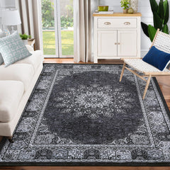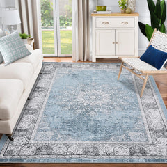 Garvee Vintage Area Rugs, Washable Rug for Living Room, Floral Print Rug, Vintage Rug Distressed Indoor Traditional Mat, Foldable Thin Rug, Non Slip Carpet for Bedroom, Dining Room, Home Office