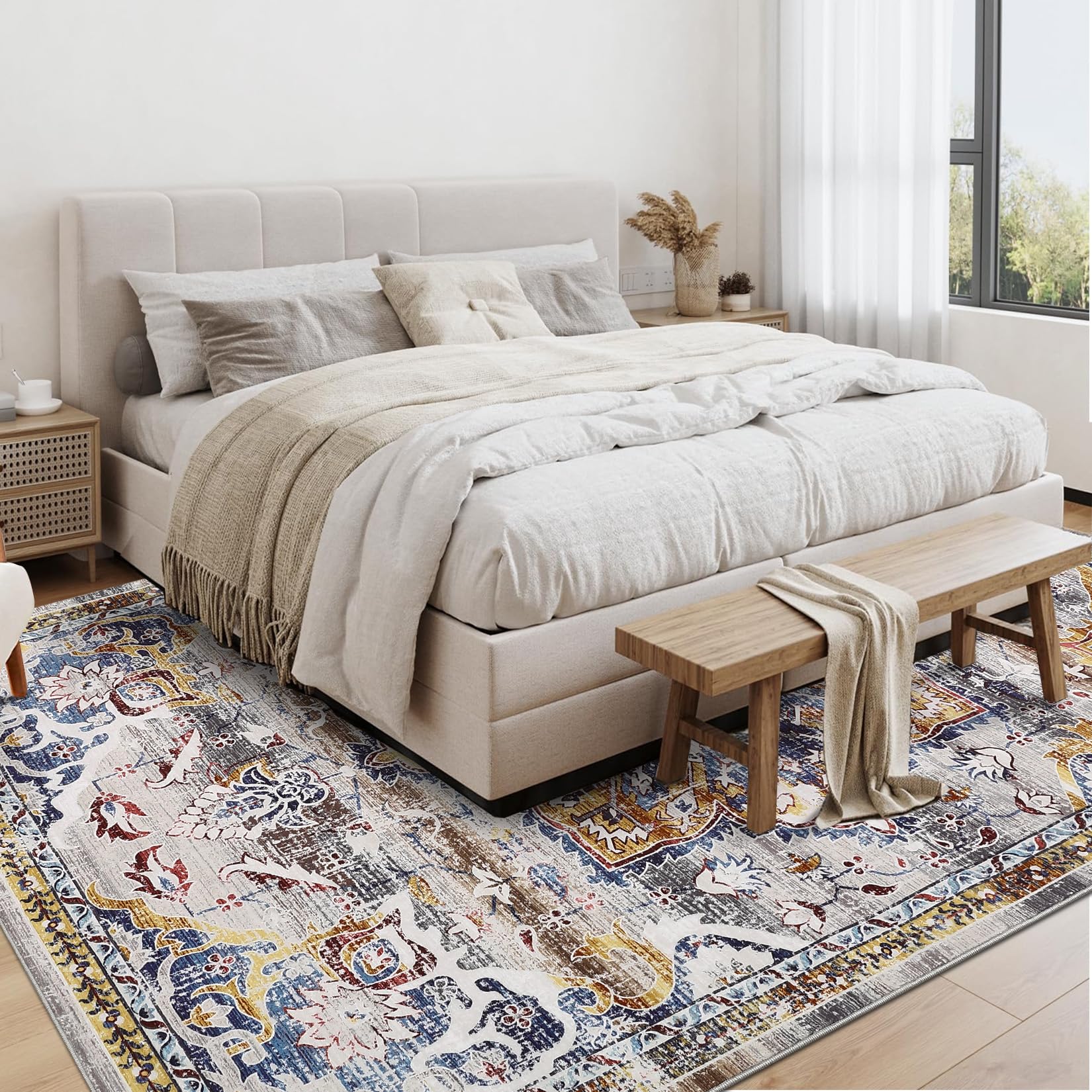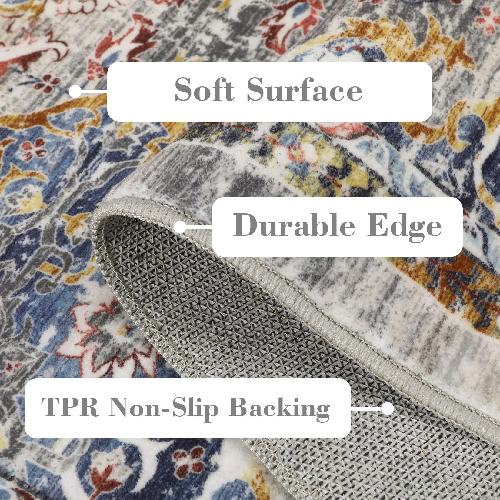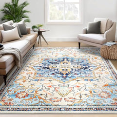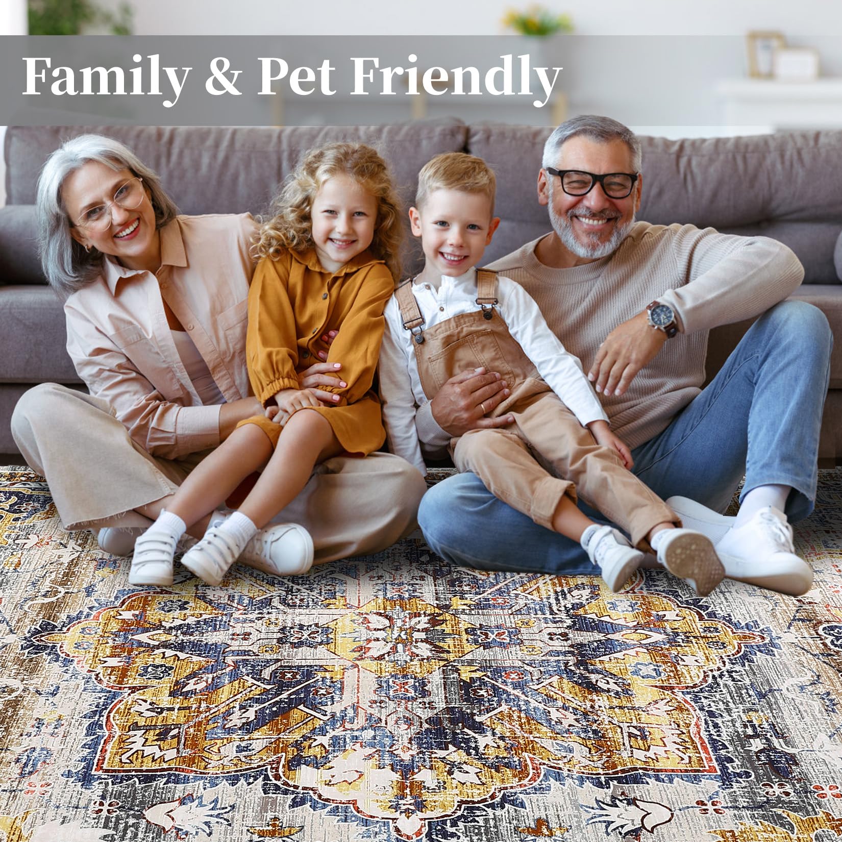 Garvee Vintage Boho Rug 9x12 Washable Non-Slip Soft Polyester for Bedroom Living Room Stain Resistant