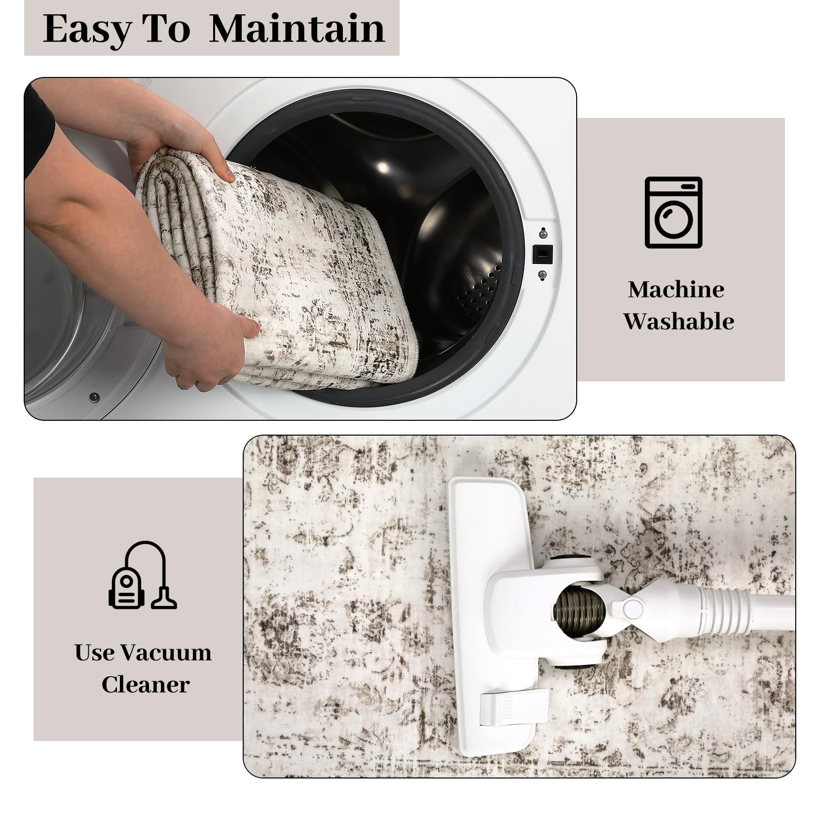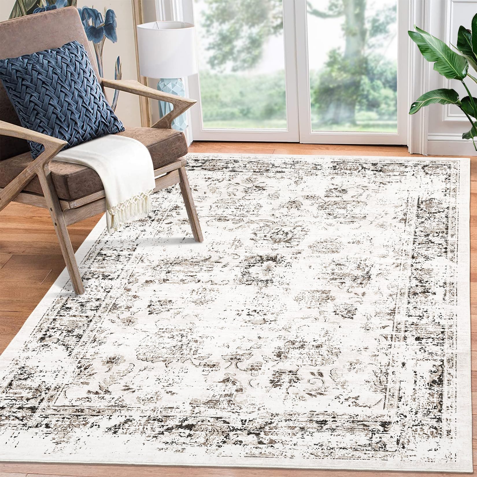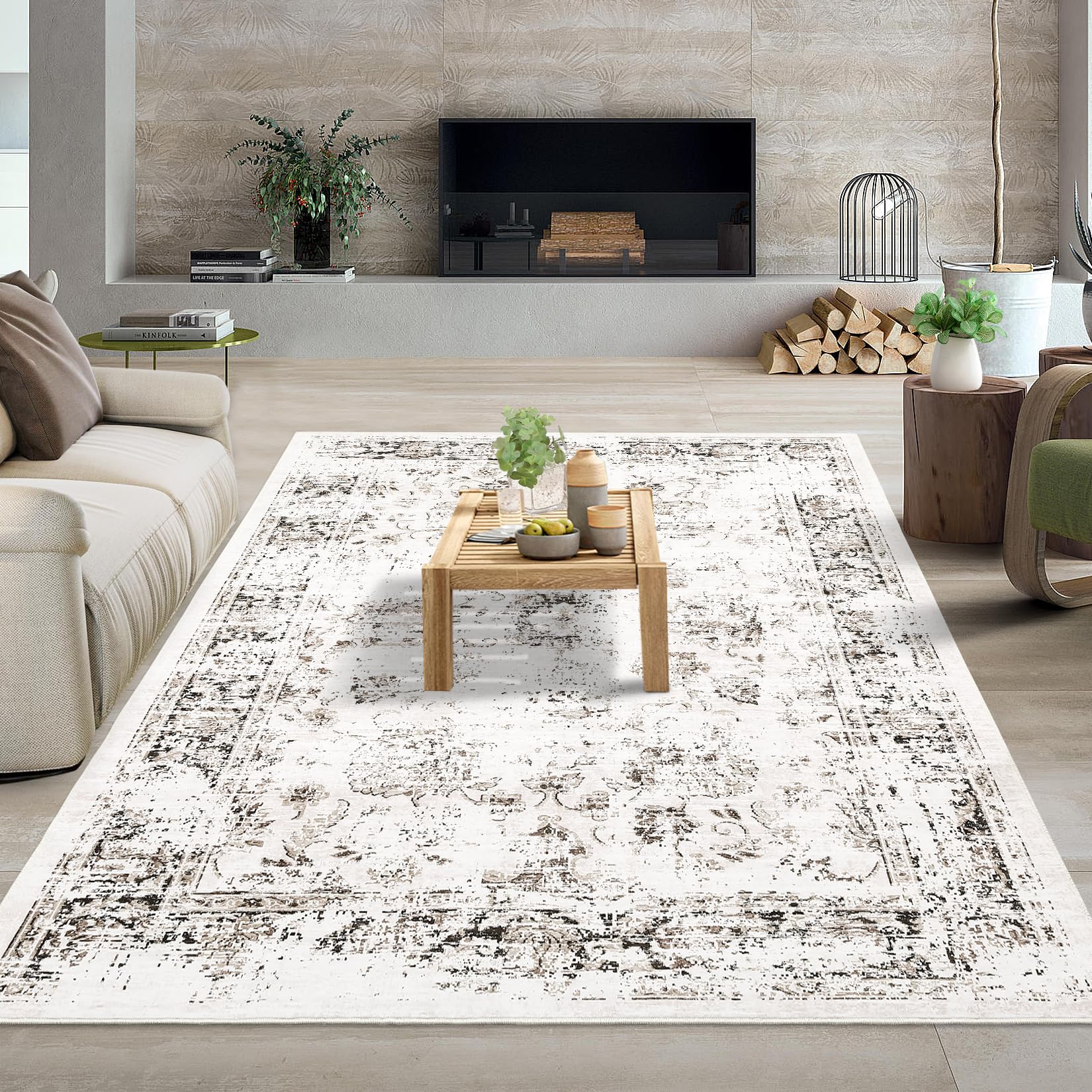 Garvee Vintage Distressed Area Rug 8x10 Living Room Rug Stain Resistant Large Bedroom Rug Non-Slip Throw Floor Carpet Indoor Traditional Dining Room Rug Boho Accent Rug for Home Office, Tan