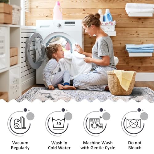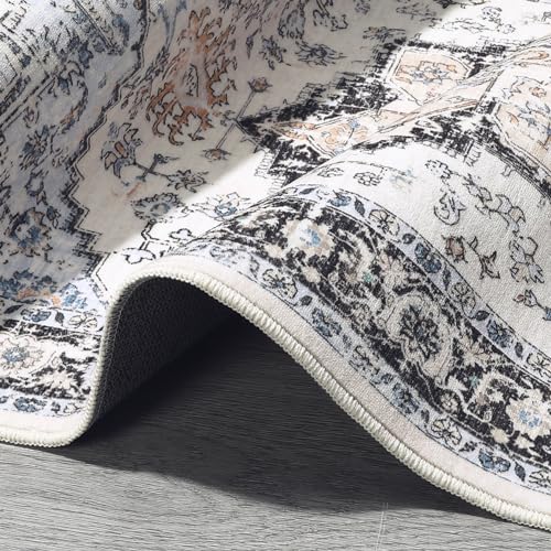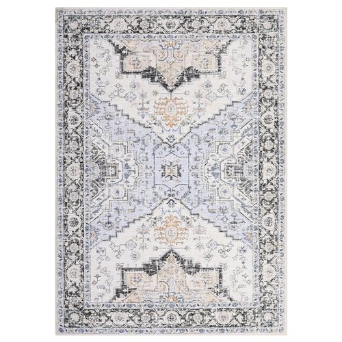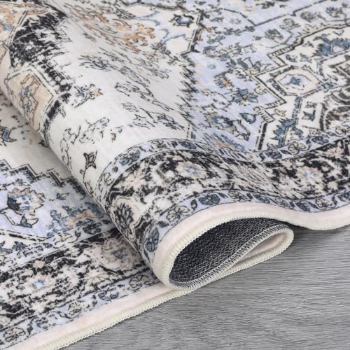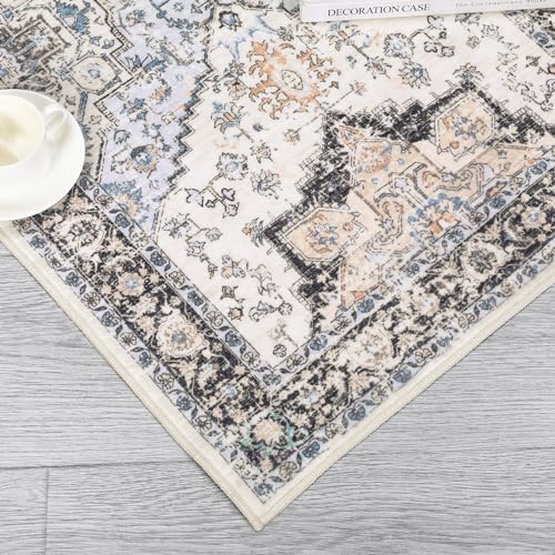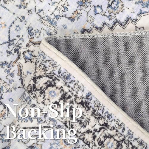 Garvee Vintage Floral Soft Rug Low Pile Washable Area Rug for Living Room - Light Blue
