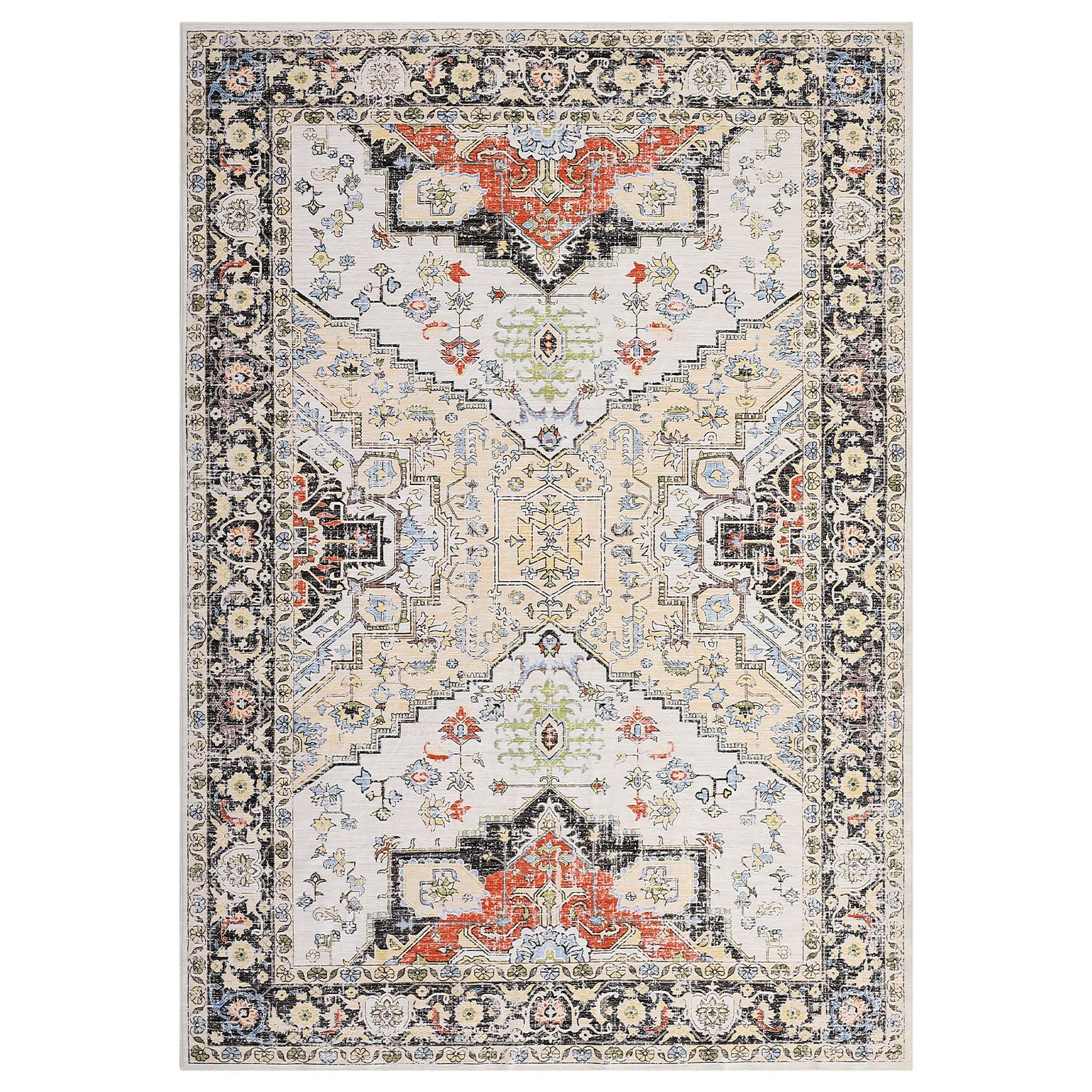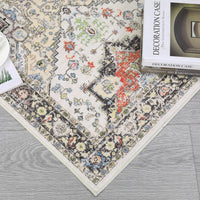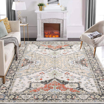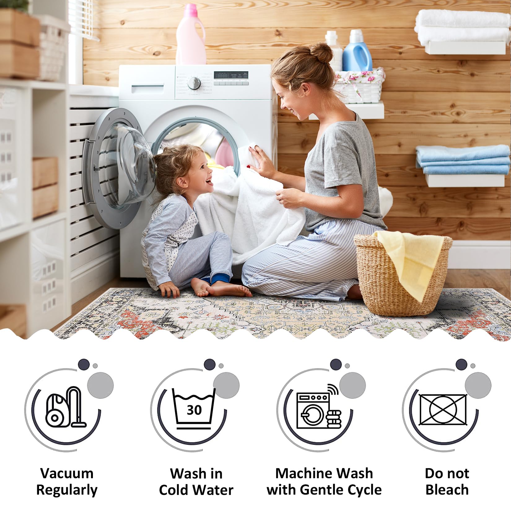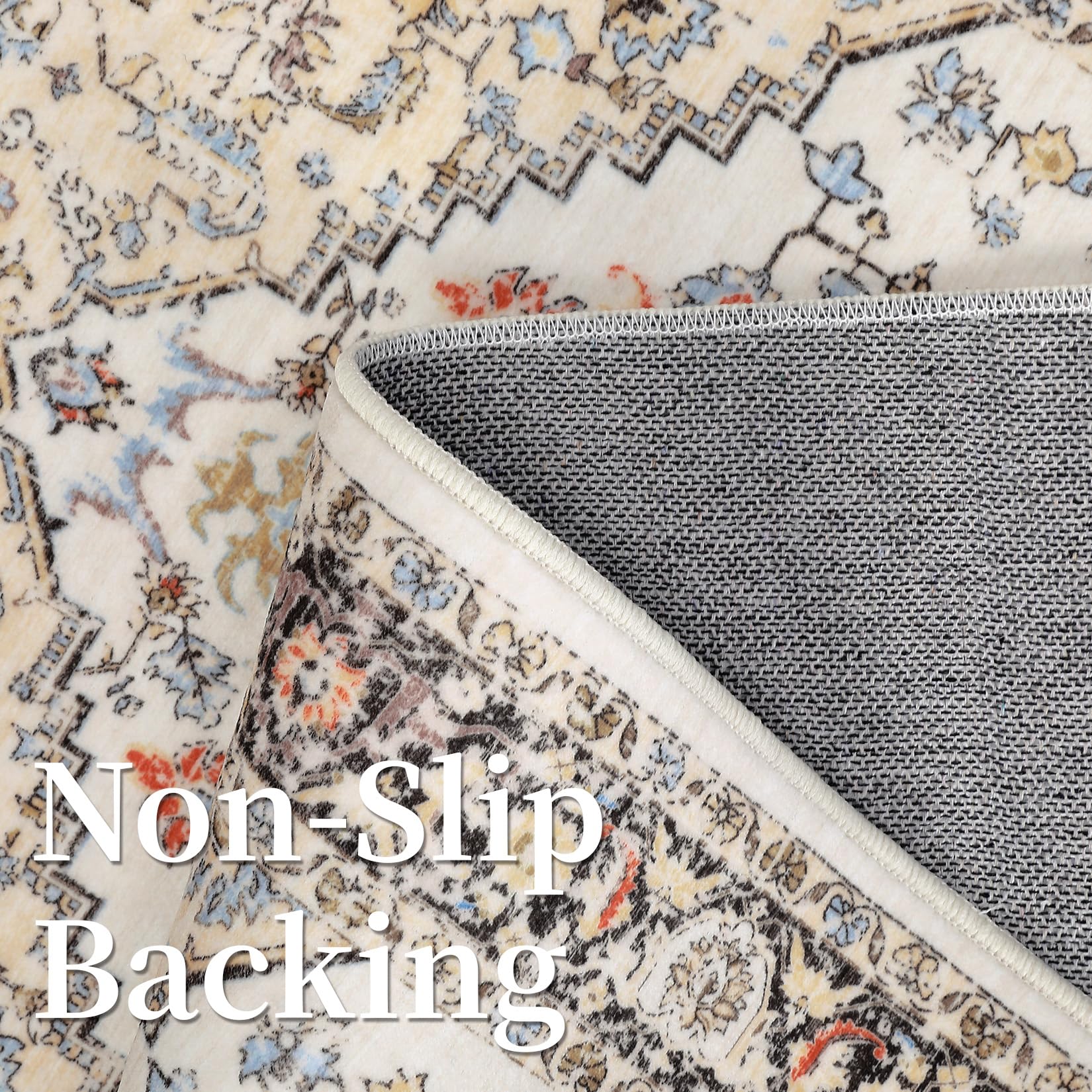 Garvee Vintage Floral Washable Area Rug 9x12 - Soft Low Pile, Non-Slip TPR Backing, Polyester, Easy Maintenance, Perfect for Living Room, Bedroom, Office
