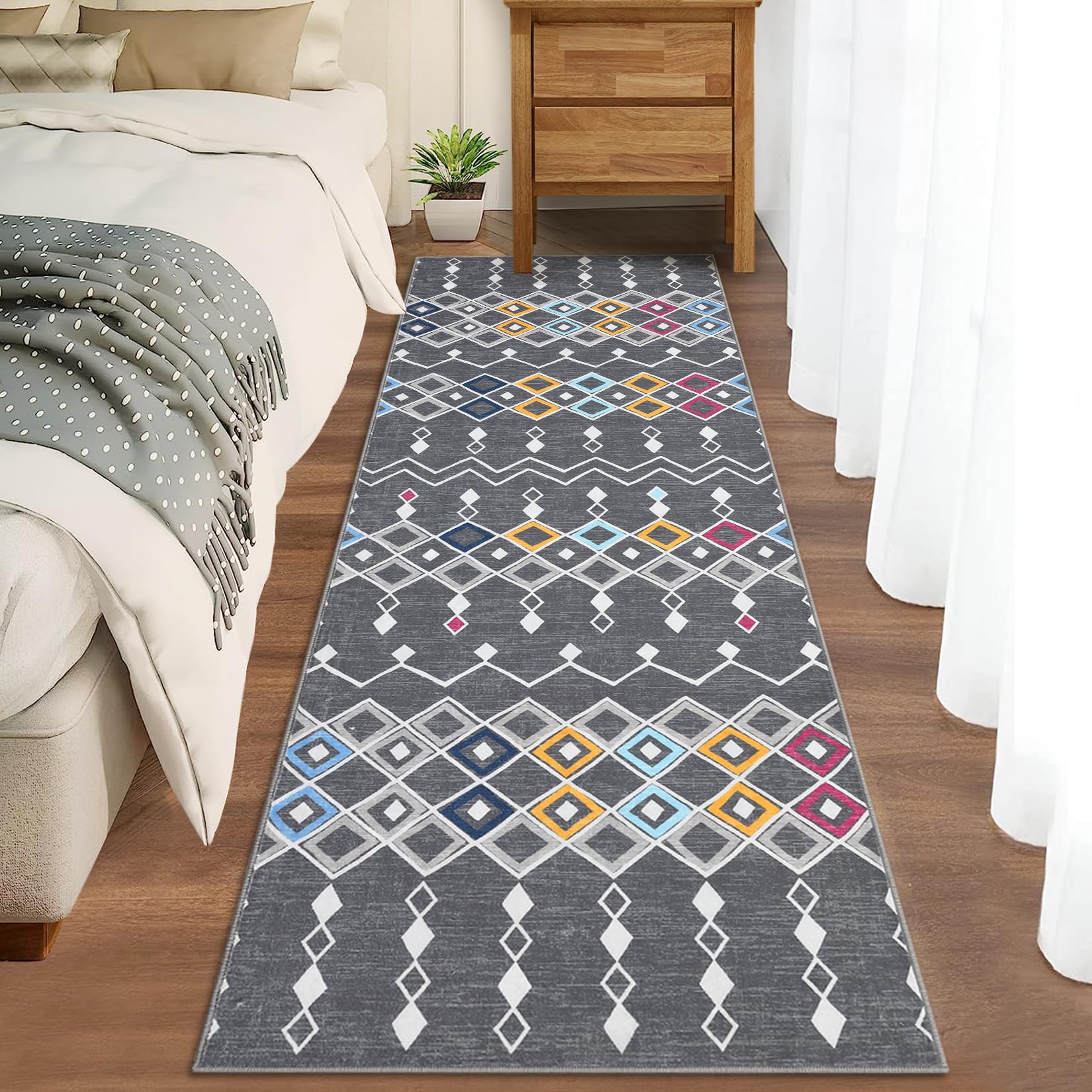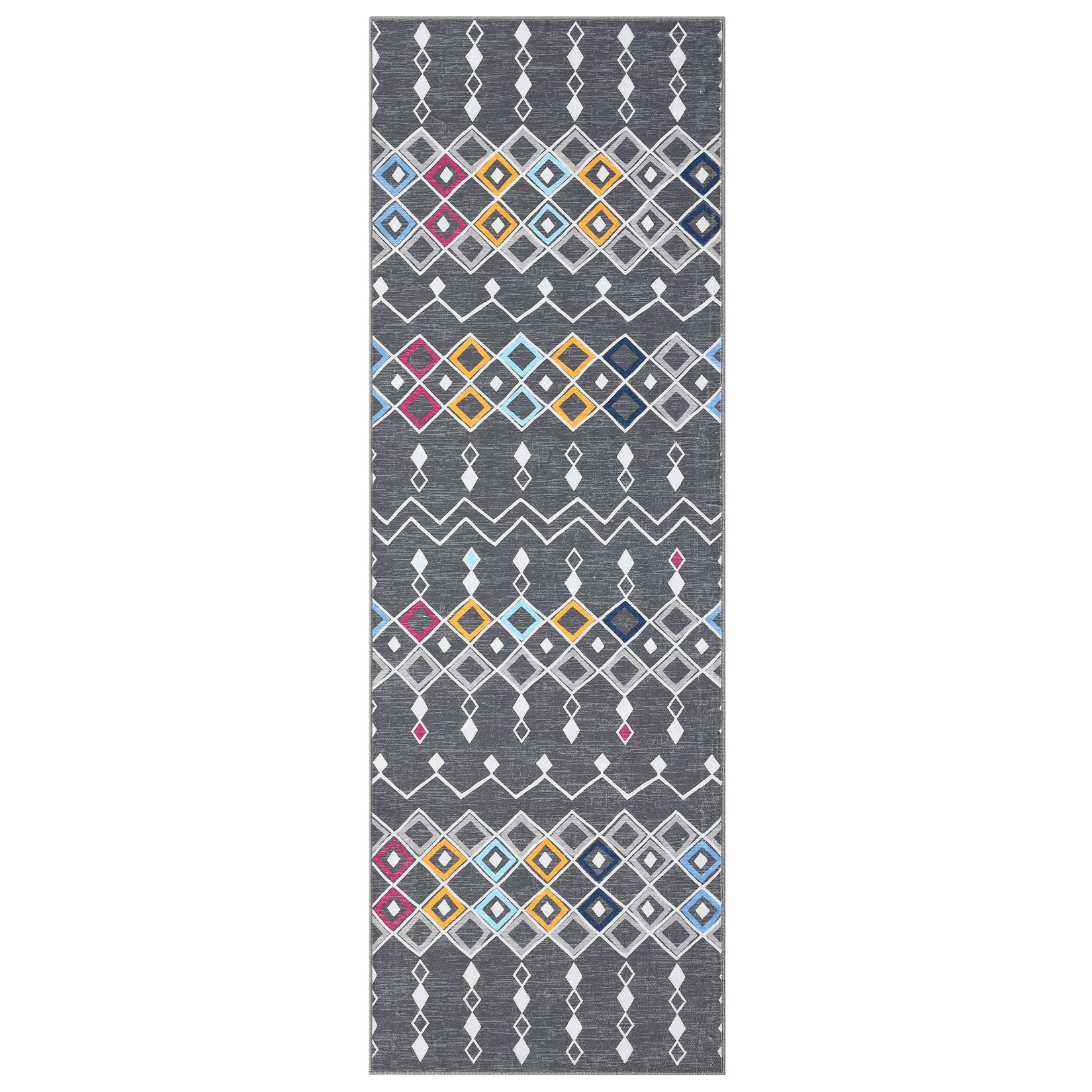Garvee Vintage Geometric Runner Rug 2x6 Faux Wool Moroccan Design Non-Slip Washable Soft Low Pile Foldable for Living Room Bedroom