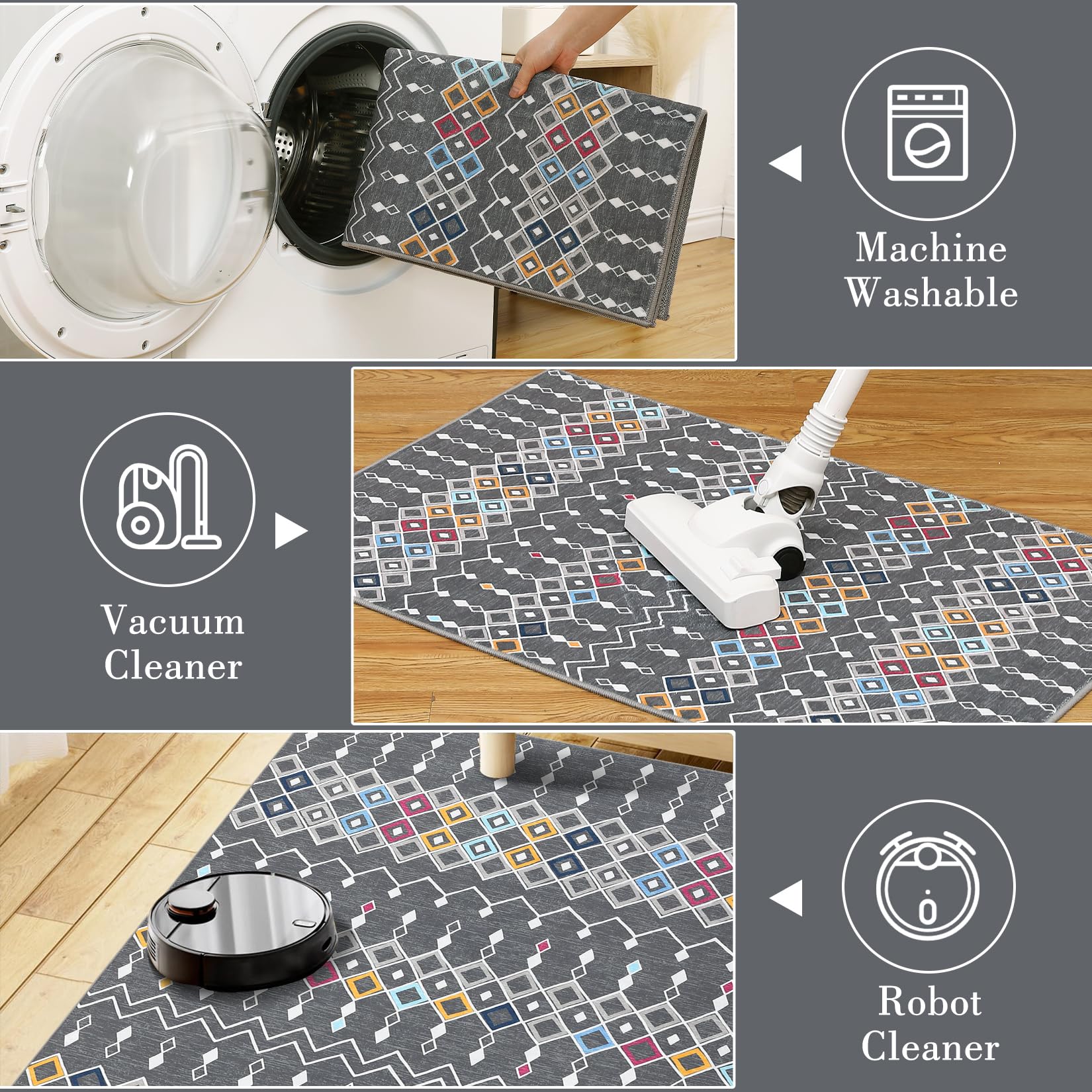 A machine-washable rug offers a family-friendly solution that combines practicality and style. It's as easy as doing a load of laundry, and the best part? No folding required afterward!