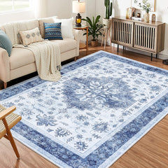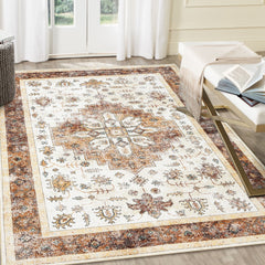 Garvee Vintage Retro Washable Area Rug - Non-Slip Low Pile Indoor Carpet for Living Room, Bedroom, Dining Room & Home Office