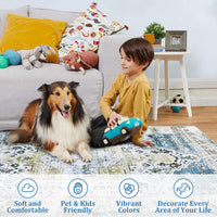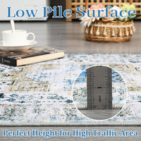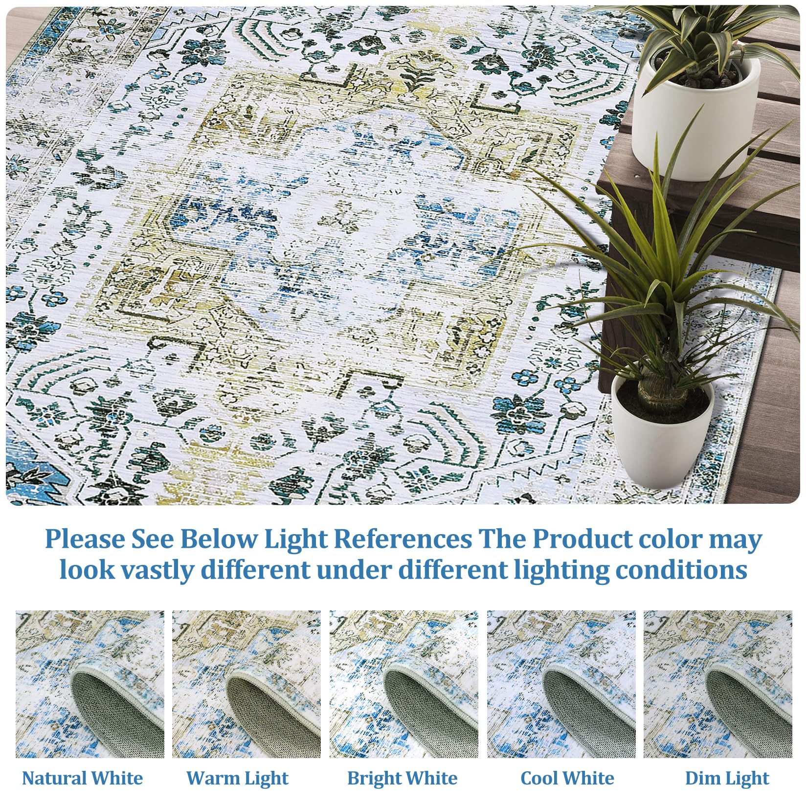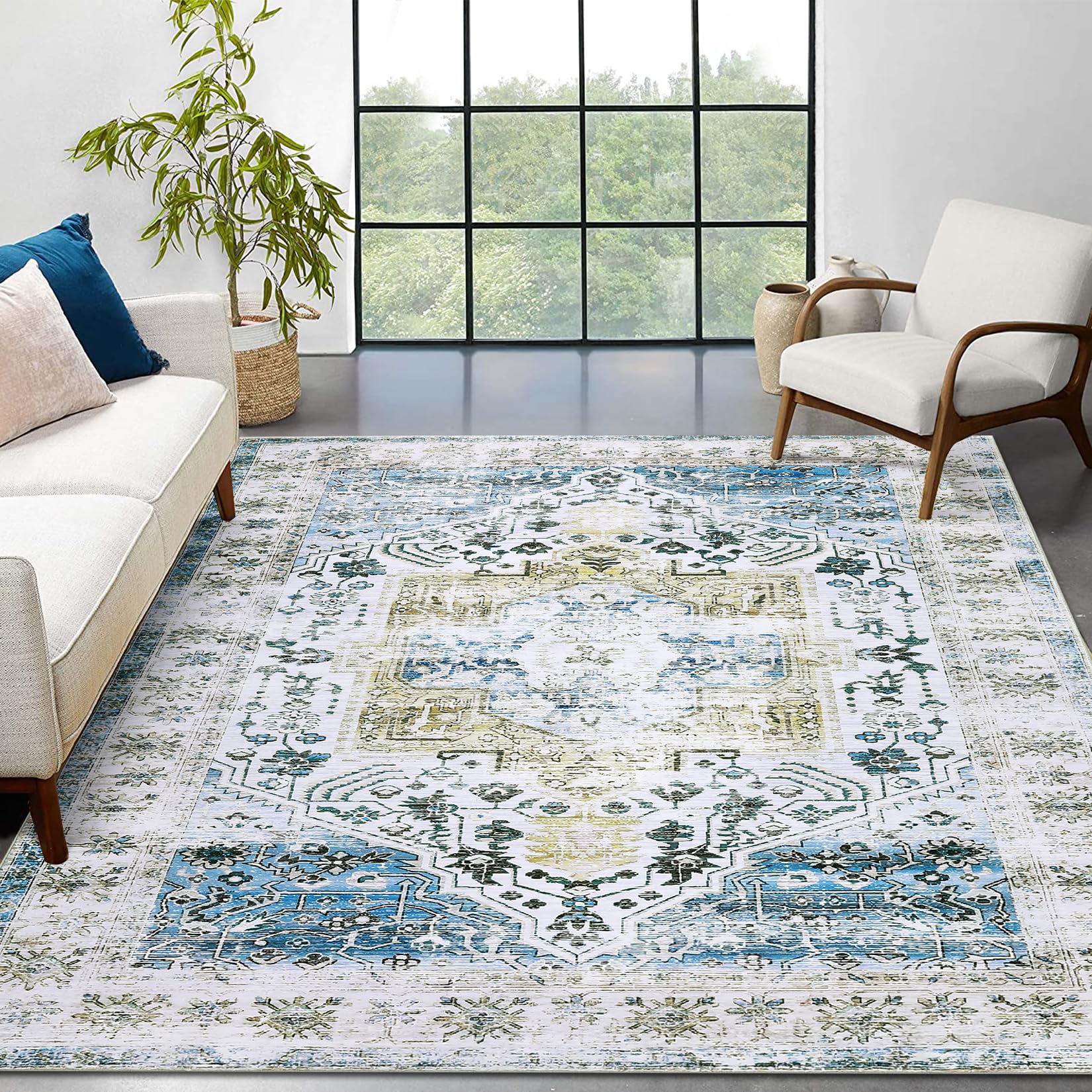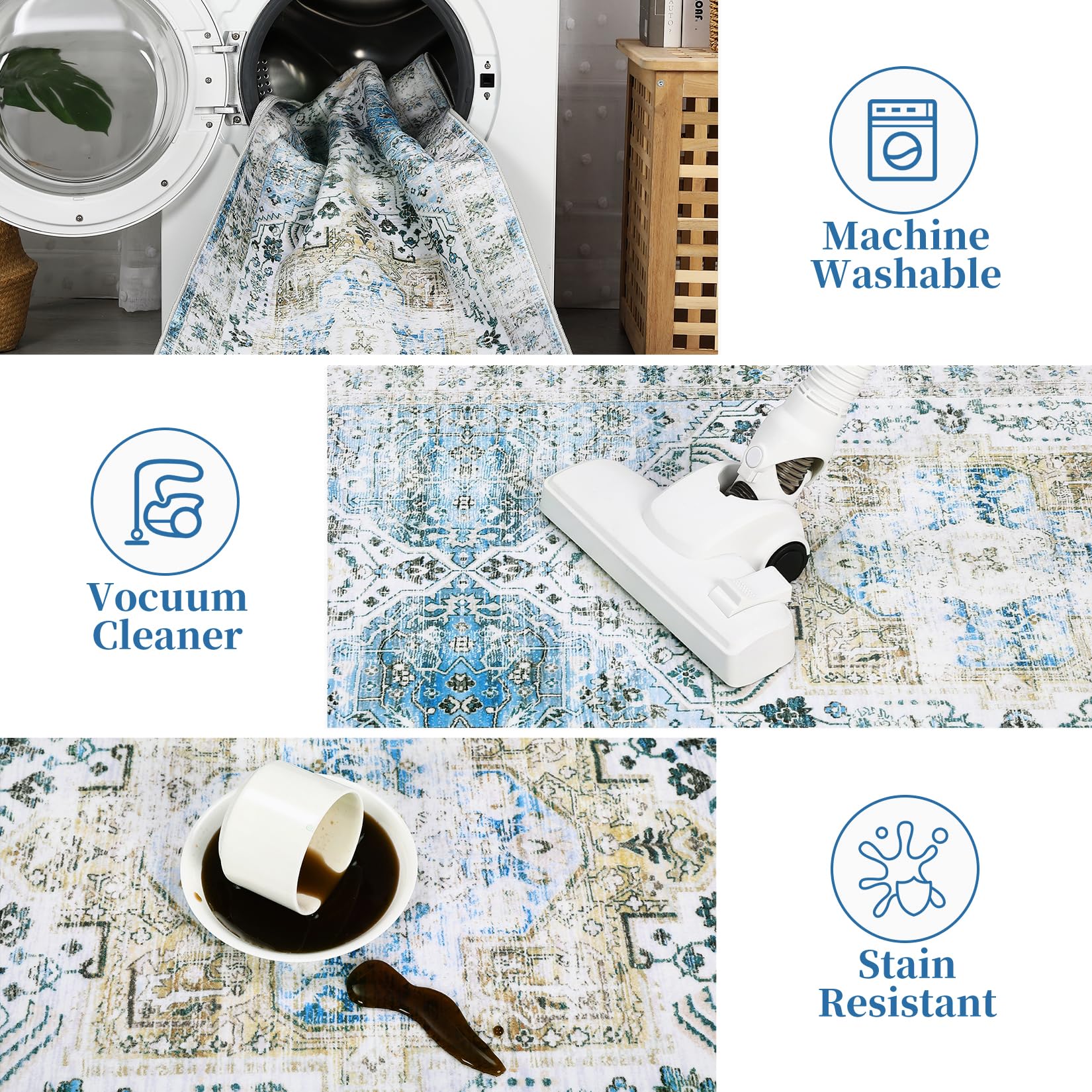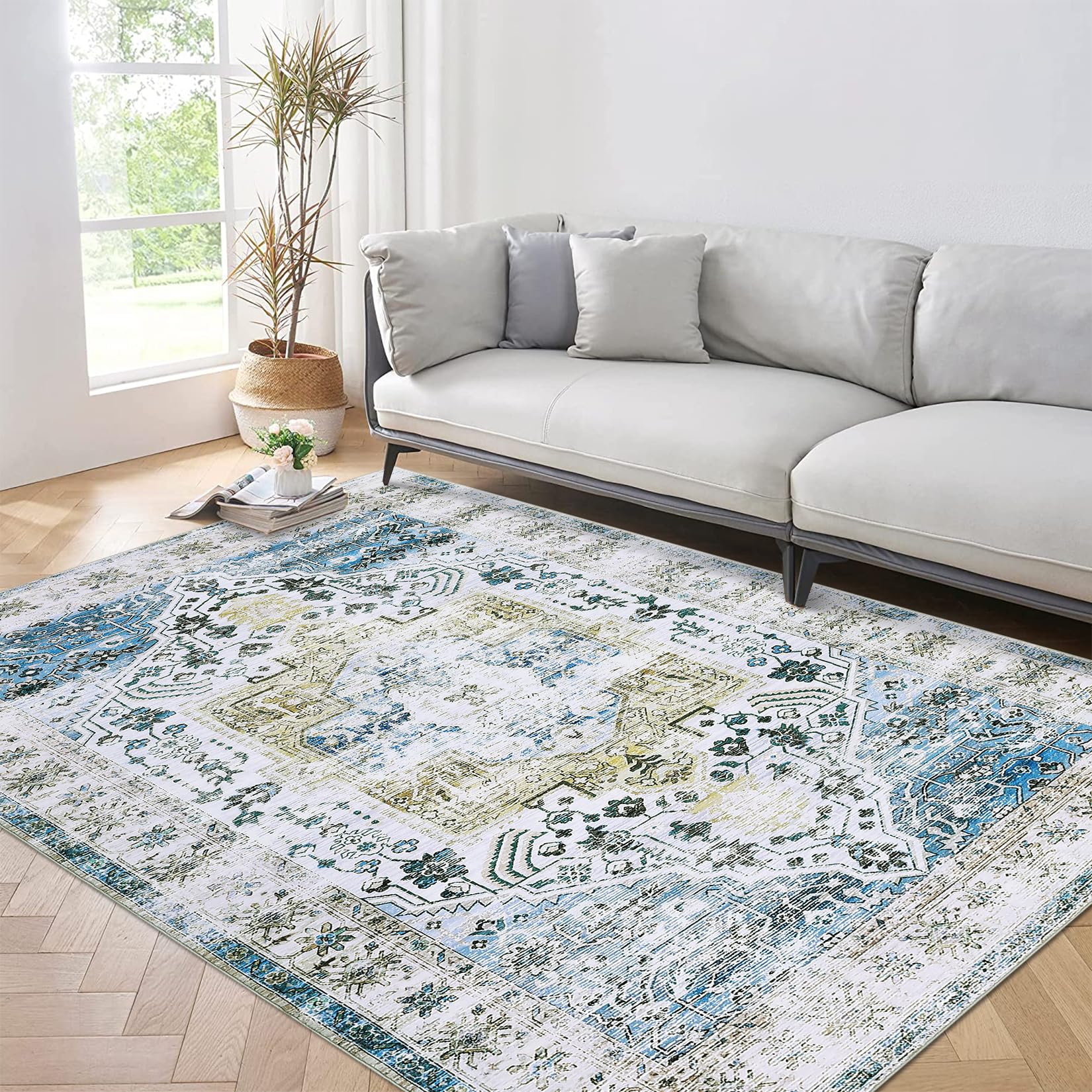 Garvee Vintage Rug 6x9 Washable Area Rug Soft Area Rug for Bedroom Non Slip Non Shedding Rug Carpet Low Pile Ultra Thin Rug Stain Resistant Accent Rug, Blue Multi