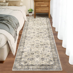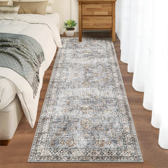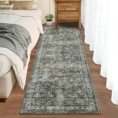 Garvee Vintage Throw Rug 5x7 Non Slip Non Shedding Washable Floor Cover, Low Pile Traditional Distressed Retro Carpet, Foldable Floral Print Soft Mat for Dining Room Bathroom Kitchen