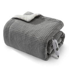Garvee Electric Heated Blanket King Size with Dual Controllers, Fast Heating Throw with 4 Adjustable Heat Levels, Soft Waffle Embossed, Machine Washable, 90"x100" Grey