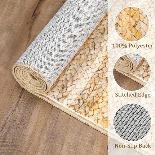 Garvee Modern Natural 10x13 Washable Rug Large Area Rug Non Shedding Living Room Rug Low Pile Soft Bedroom Rug Modern Rug Braided Print Indoor Accent Rug Lightweight Foldable Rug for Playroom Nursery