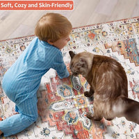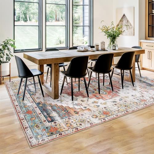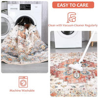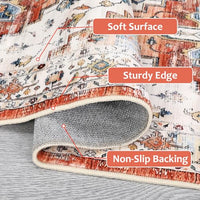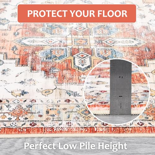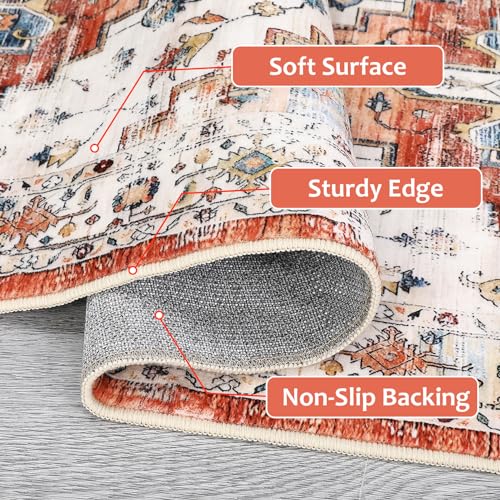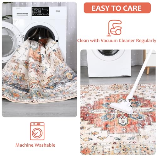 Garvee Washable 5x7 Boho Rug for Living Room - Soft, Non-Slip, Vintage Polyester - Ideal for Bedroom, Kitchen, Laundry Room