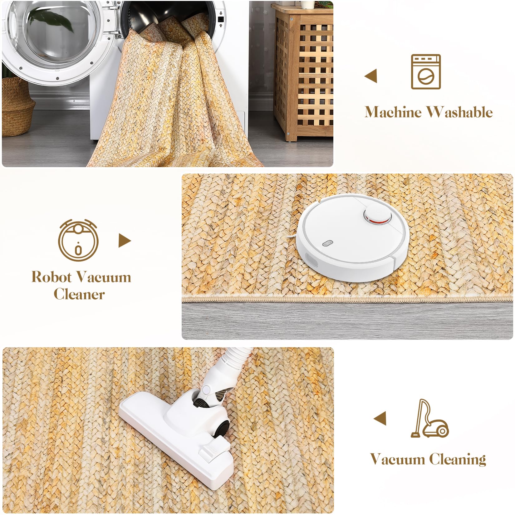 This rug is lightweight and easy to move around. The foldable design makes storage simple, and the machine-washable feature is great for keeping it fresh. Ideal for high-traffic areas.
