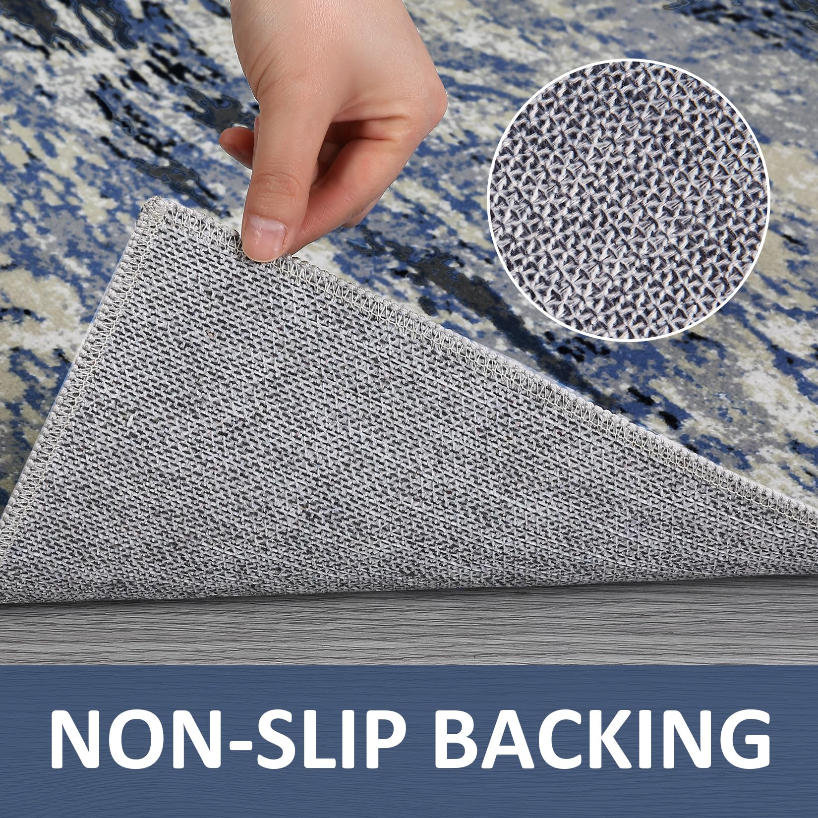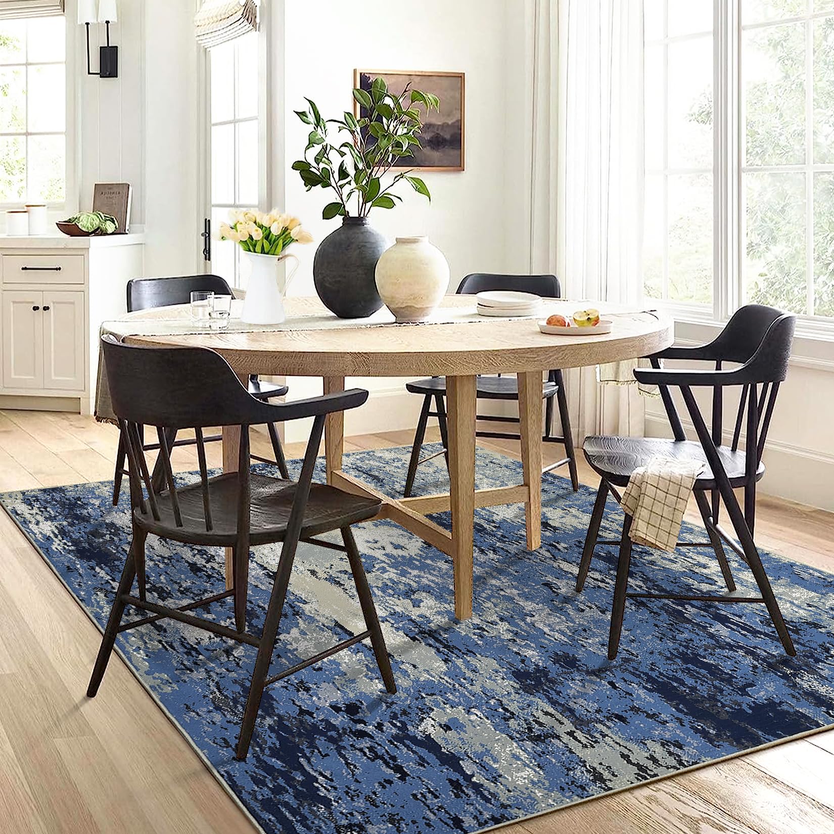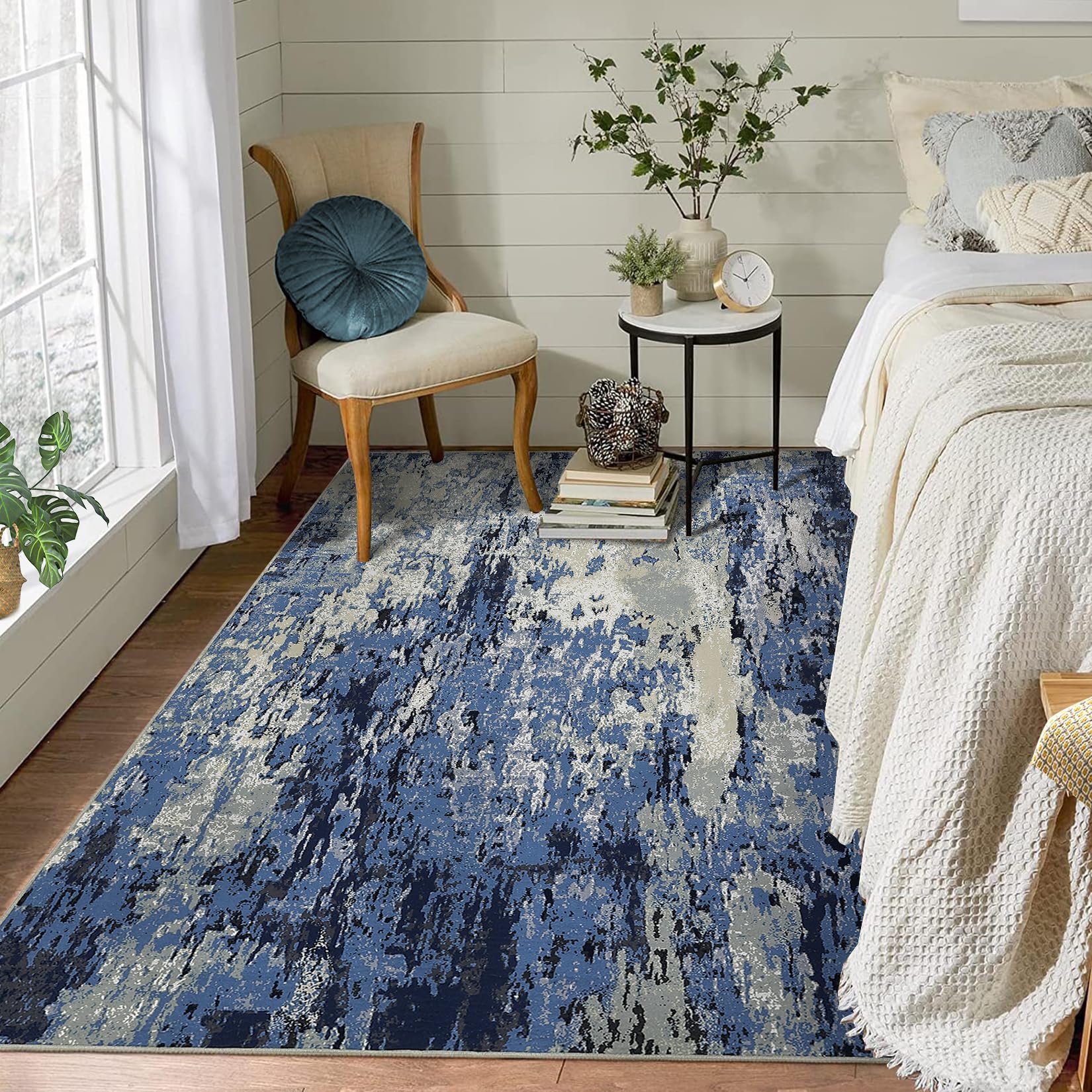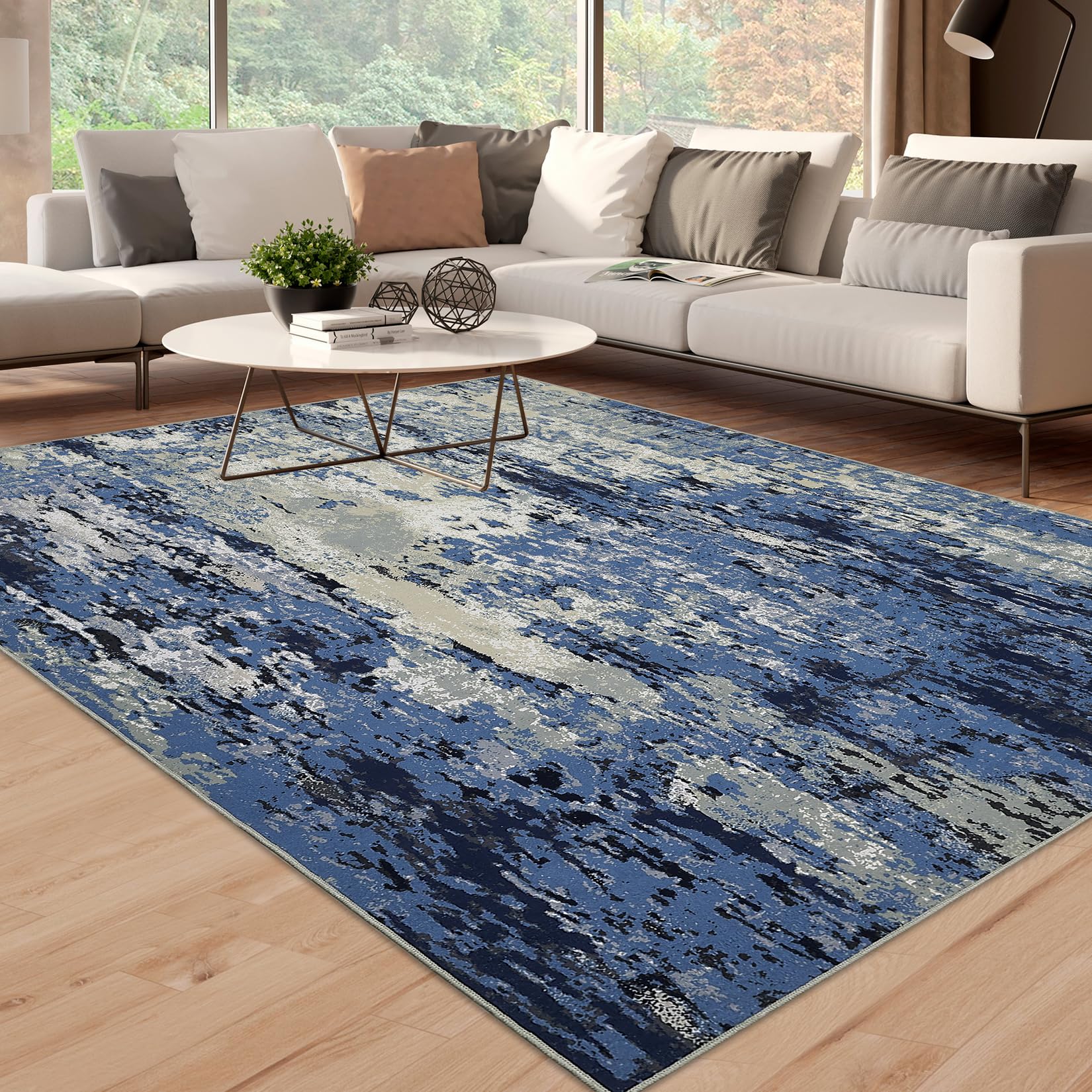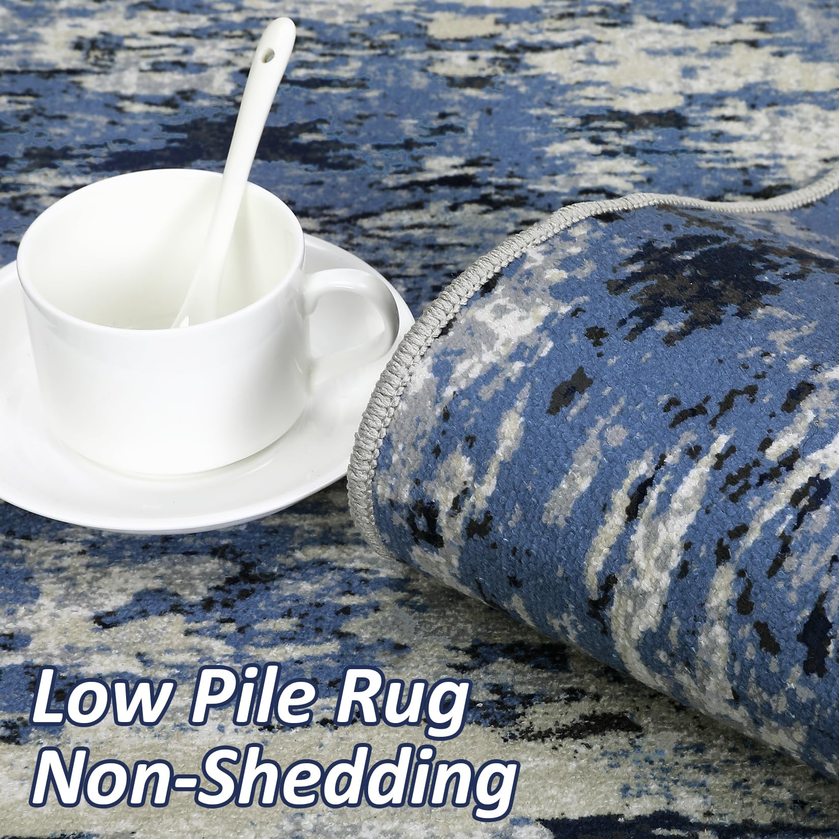 Garvee Washable 9x12 Area Rug for Living Room, Office - Abstract Distressed Design, Low Pile, Polyester, High Traffic, Cozy, Blue