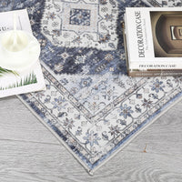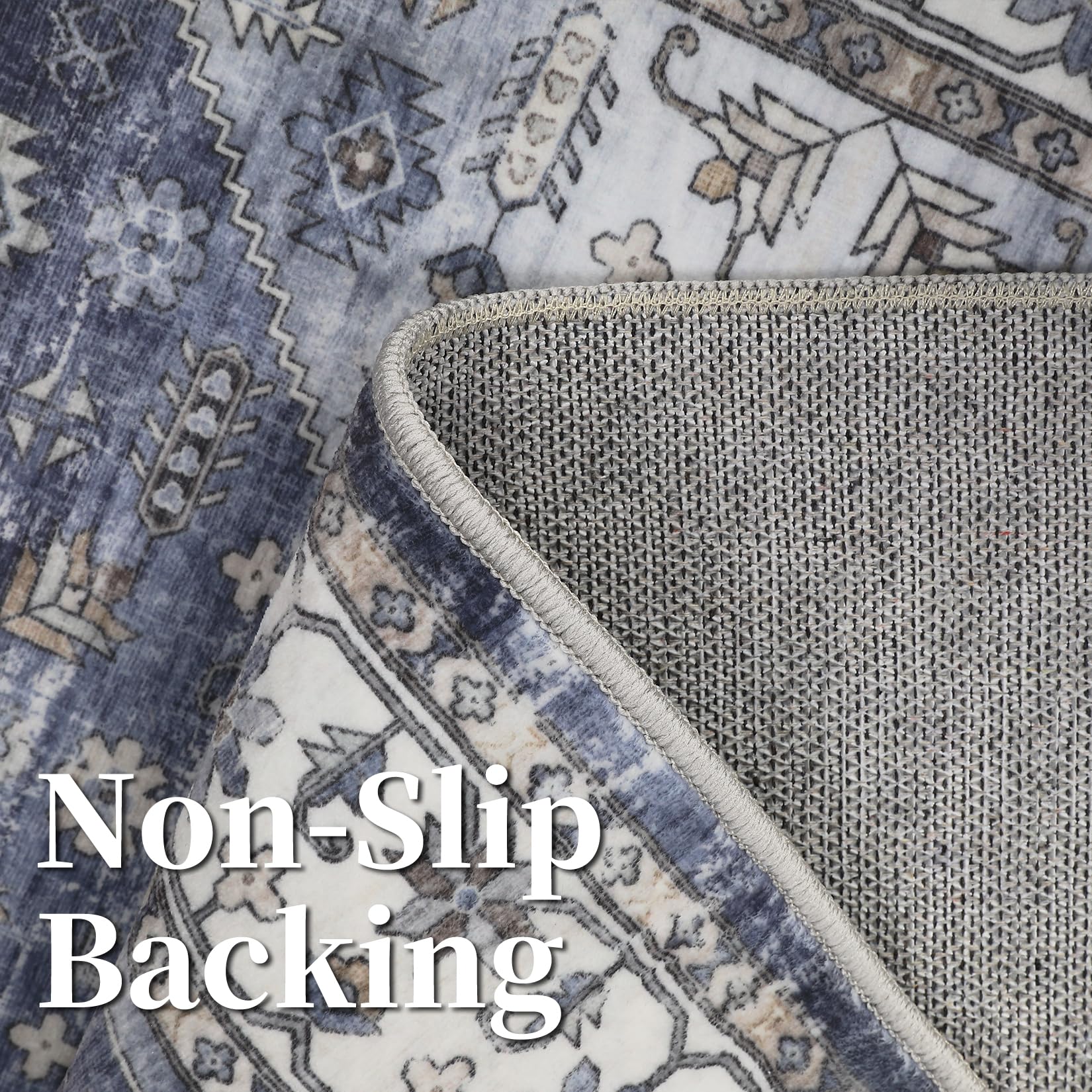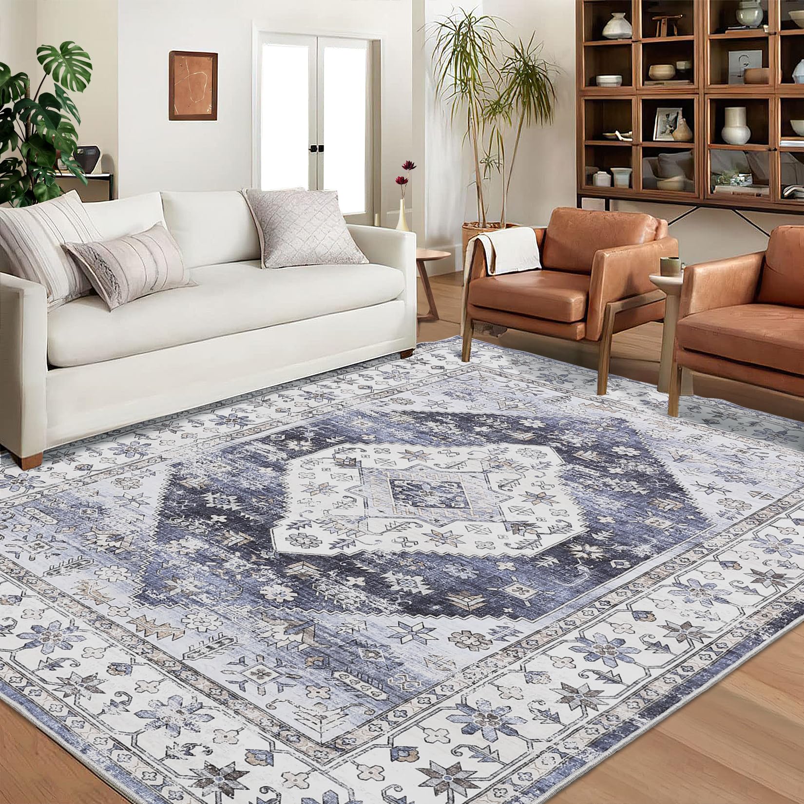 Garvee Washable Area Rug 10x13 Large Area Rugs for Living Room Vintage Non-Slip Indoor Soft Accent Carpet Low Pile Non-Shedding Oriental Distressed Throw Rugs for Bedroom Nursery Dorm Office Blue