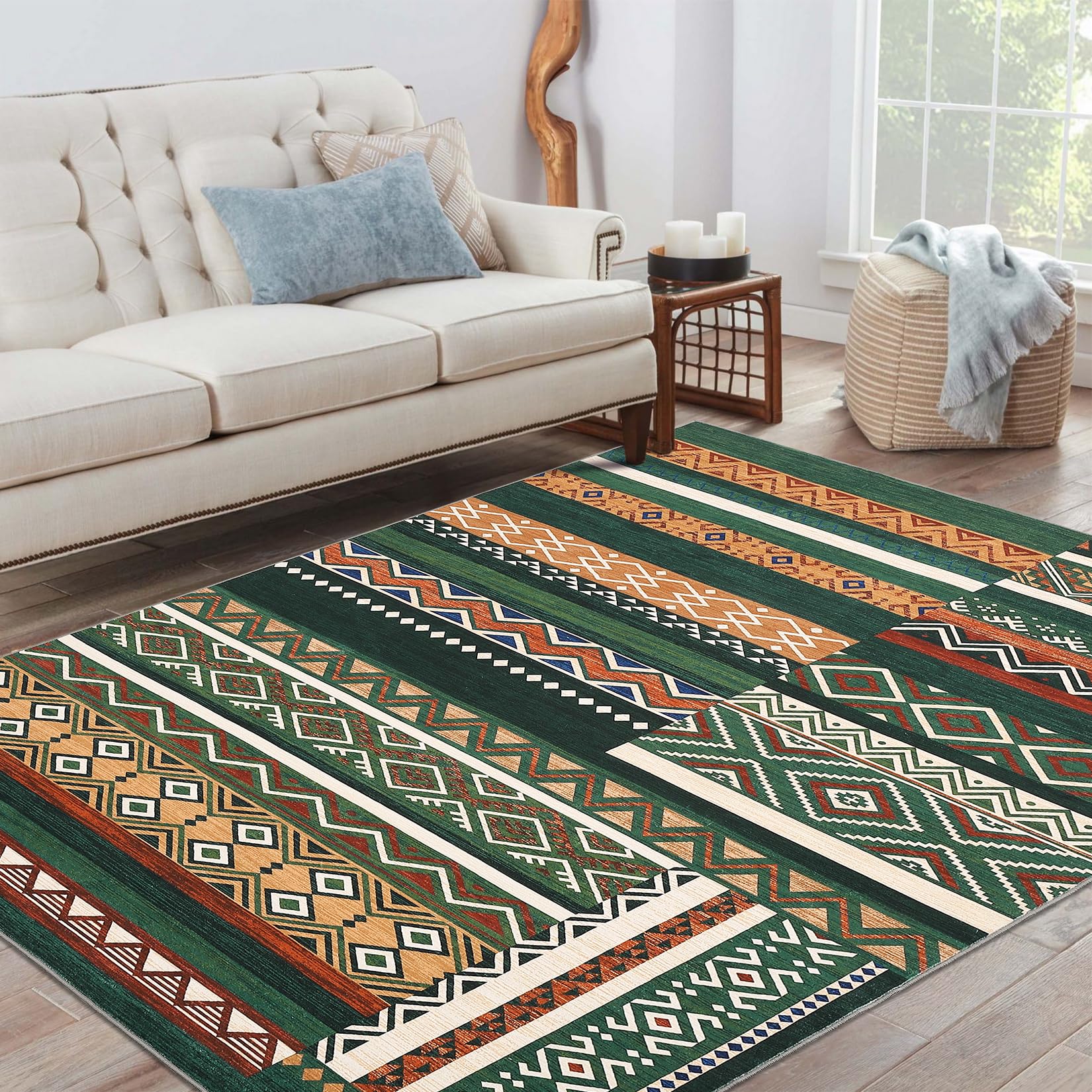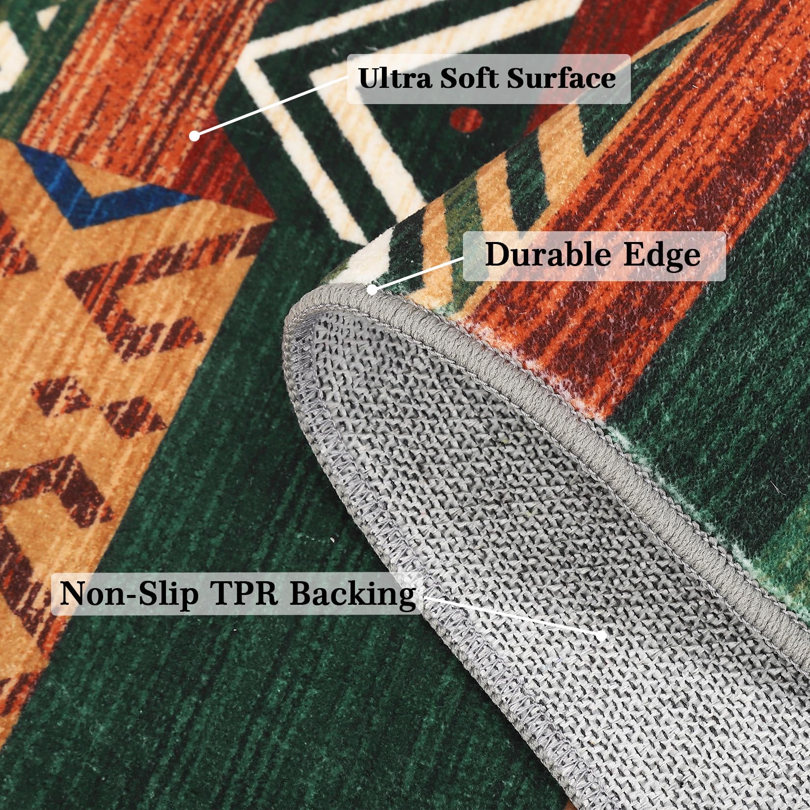 - 【NON-SLIP SAFETY】-Crafted with the highest quality polyester fibers with skid resistant TPR backing, this non-slip area rug stays securely in place, preventing slips and protecting your floors from scratches. Whether it's children playing or pets running and jumping, our rug provides a safety guarantee with its non-slip backing. The rug grips well on tile, wood floors, and more, reducing the risk of slipping and giving you greater peace of mind