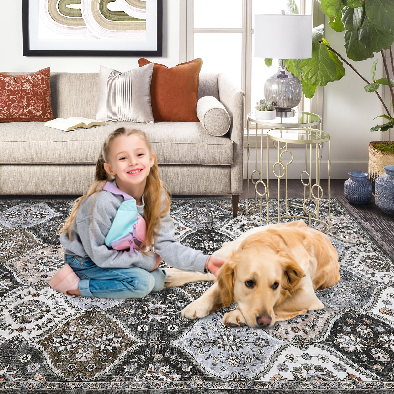 Garvee Washable Area Rug 5x7 Moroccan Faux Wool Soft Non-Slip Vintage Stain Resistant for Bedroom Living Room Office Classroom