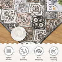 The washable rug is an ideal base for high-traffic areas such as the entrance, living room, dining room, kitchen, and hallways.