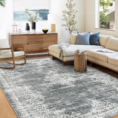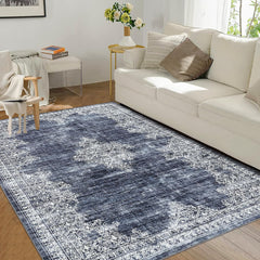 Garvee Washable Area Rug 5x7 Rug for Living Room Boho Vintage Rug for Bedroom Aesthetic Distressed Non Slip Throw Rugs Soft Low Pile Stain Resistant Carpet for Classroom Nursery 5'x7' Blue