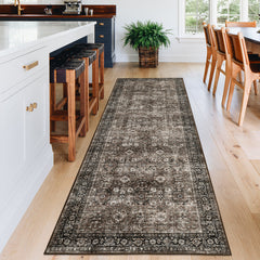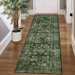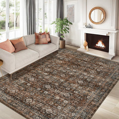 Garvee Washable Area Rug 6 x 9 Vintage Floral Print Indoor Mat with Non-Slip Backing, Distressed Low Pile Floor Cover, Foldable Traditional Throw Rug for Living Room, Office, Red