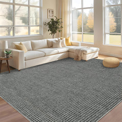 Garvee Washable Area Rug 8'x10' Rugs for Living Room, Soft Ultra Thin Dining Room Rugs Bedroom Rug, Boho Waffle Print Large Indoor Rugs Floor Carpet for Living Room Bedroom Nursery, Grey