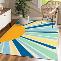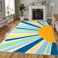 Garvee Washable Area Rug Colorful Sunrise Nursery Rug 5x7 Area Rug Non-Slip Low Pile Throw Floor Cover Large Bedroom Carpet Boho Retro Carpet Sun Rug for Living Room Playroom, Blue