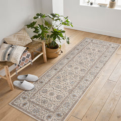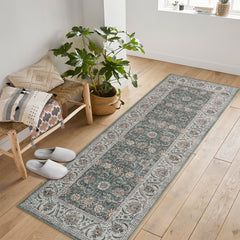 Garvee Washable Area Rug Vintage Traditional Floor Cover Foldable Thin Accent Indoor Distressed Non Slip Carpet Floral Print Mat Bedroom Living Room Bathroom (Green 2'x6')