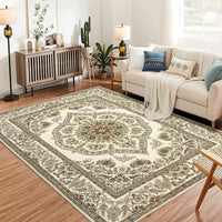 Garvee Washable Boho Floral Medallion Area Rug + Non-Slip Soft Low-Pile + Printed Carpet + Indoor Home Decor + Yellow + 9x12 + Entryway, Bedroom, Living Room
