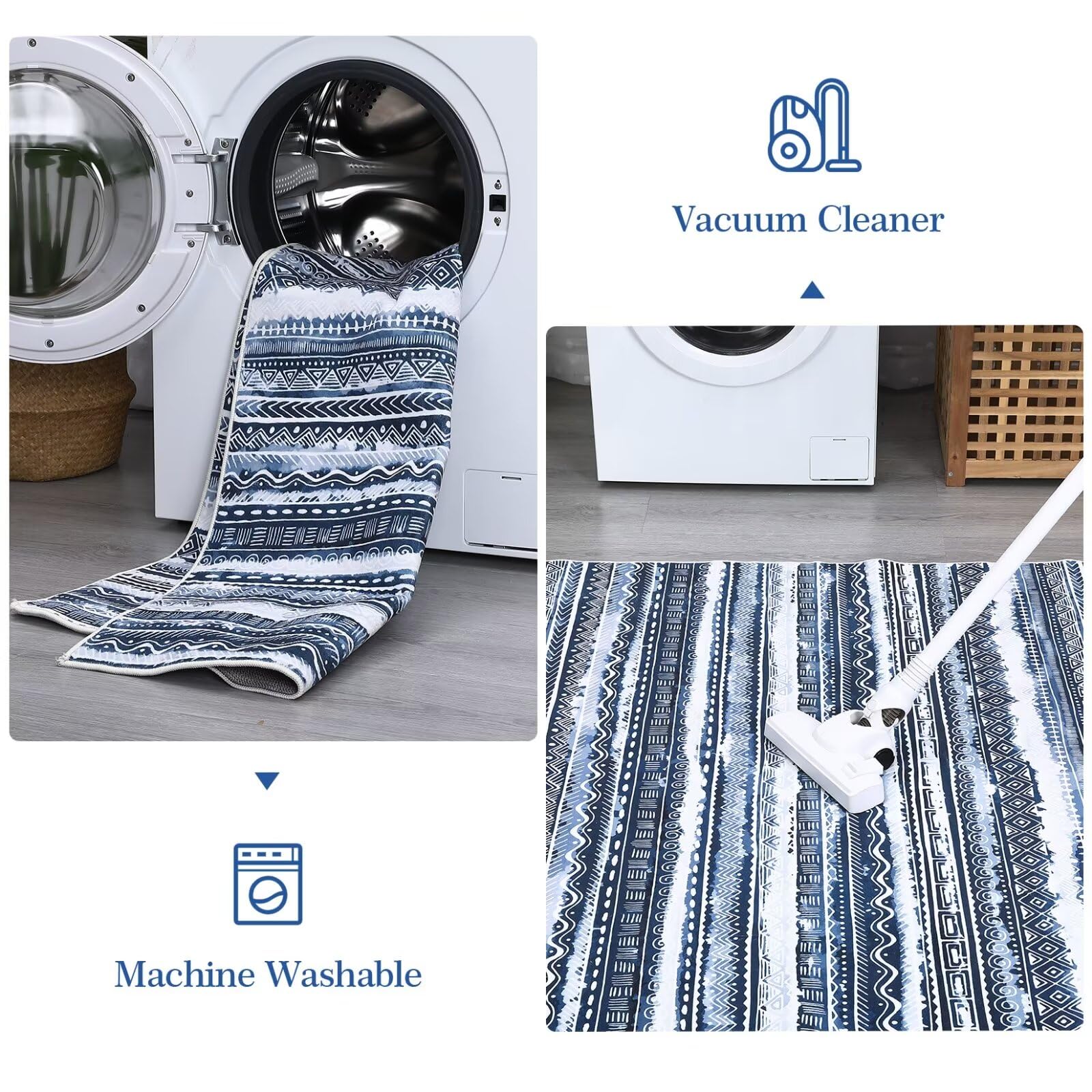 Our washable carpet effortlessly complements various Bohemian-inspired decor styles. Whether your aesthetic leans towards eclectic, boho-chic, or even minimalist, this carpet elevates your space with its unique geometric pattern and vintage charm. It serves as a statement piece that ties the room together, creating a warm and inviting ambiance.