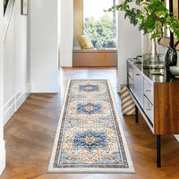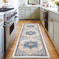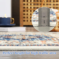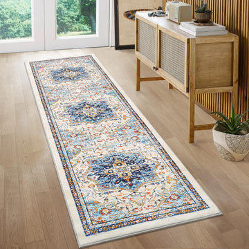 Garvee Washable Boho Tribal Runner Rug 2x6 - Non-Slip, Stain Resistant, Polyester, for Kitchen, Entryway, Hallway, Bathroom, Blue/Beige