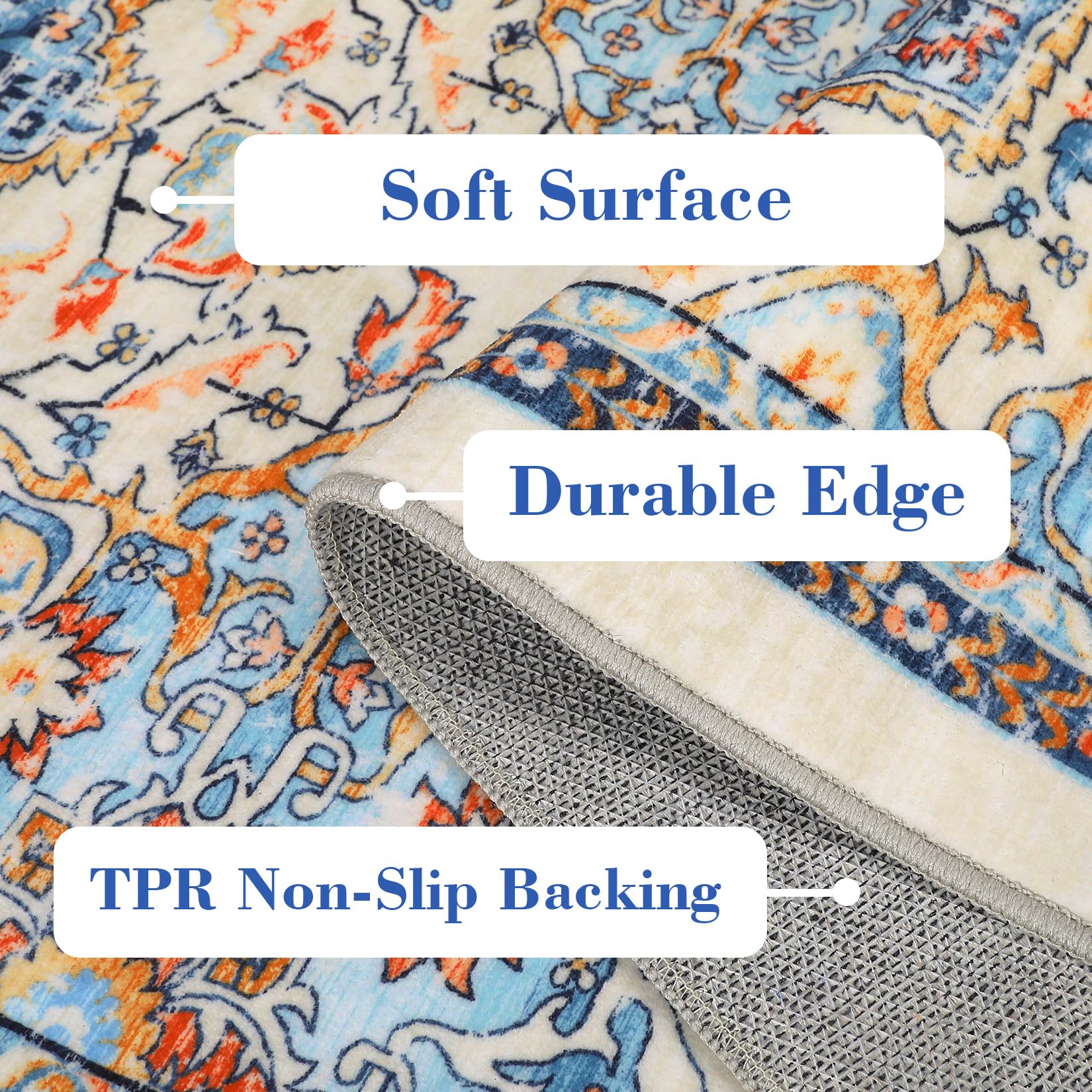 Our washable rugs use a high-density serging edge, sturdy and durable construction can make area rugs last for years.