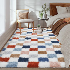 - 【Timeless Checkered Design Enhances Any Room】: Elevate your home decor with this classic modern checkered shag rug. Shaggy checkered rug is made with high pile, super long and super fine wool and padded memory foam cotton. The bold pattern brings a fresh, stylish style to living rooms, bedrooms, or dorms, making it a standout centerpiece that complements both contemporary and traditional spaces.The thick pile adds luxury while reducing noise and echoes, making this rug perfect for your space