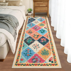 - 【Charming Floral Trellis Pattern】: This washable area rug features a unique trellis-shaped pattern adorned with delicate floral print bringing a fresh farmhouse touch and artistic flair to your living room, kitchen, or bedroom