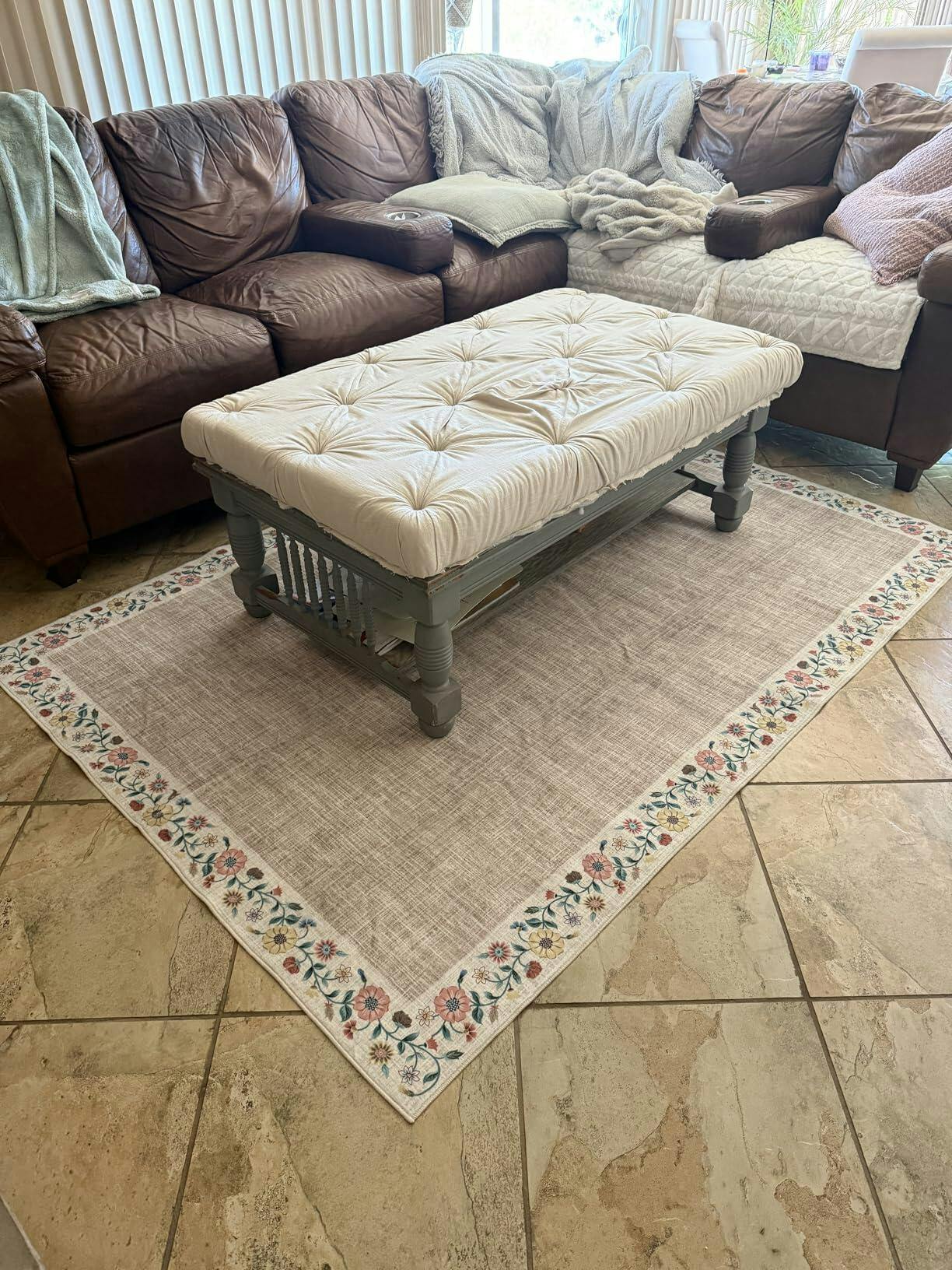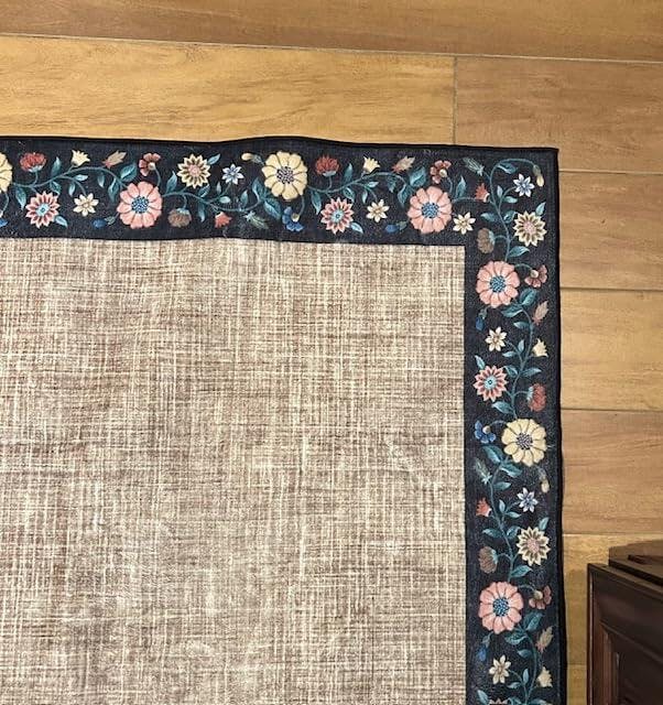 - Stylish Floral Bordered Accent Rug: Featuring a unique floral pattern and modern bordered design, this farmhouse print rug complements any home decor style. Ideal as a home decor mat for the living room, playroom, office, or dining area, it adds a natural, artistic flair while providing a versatile and elegant accent carpet
