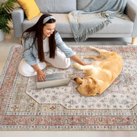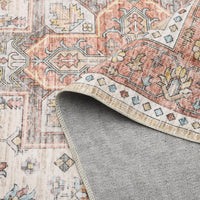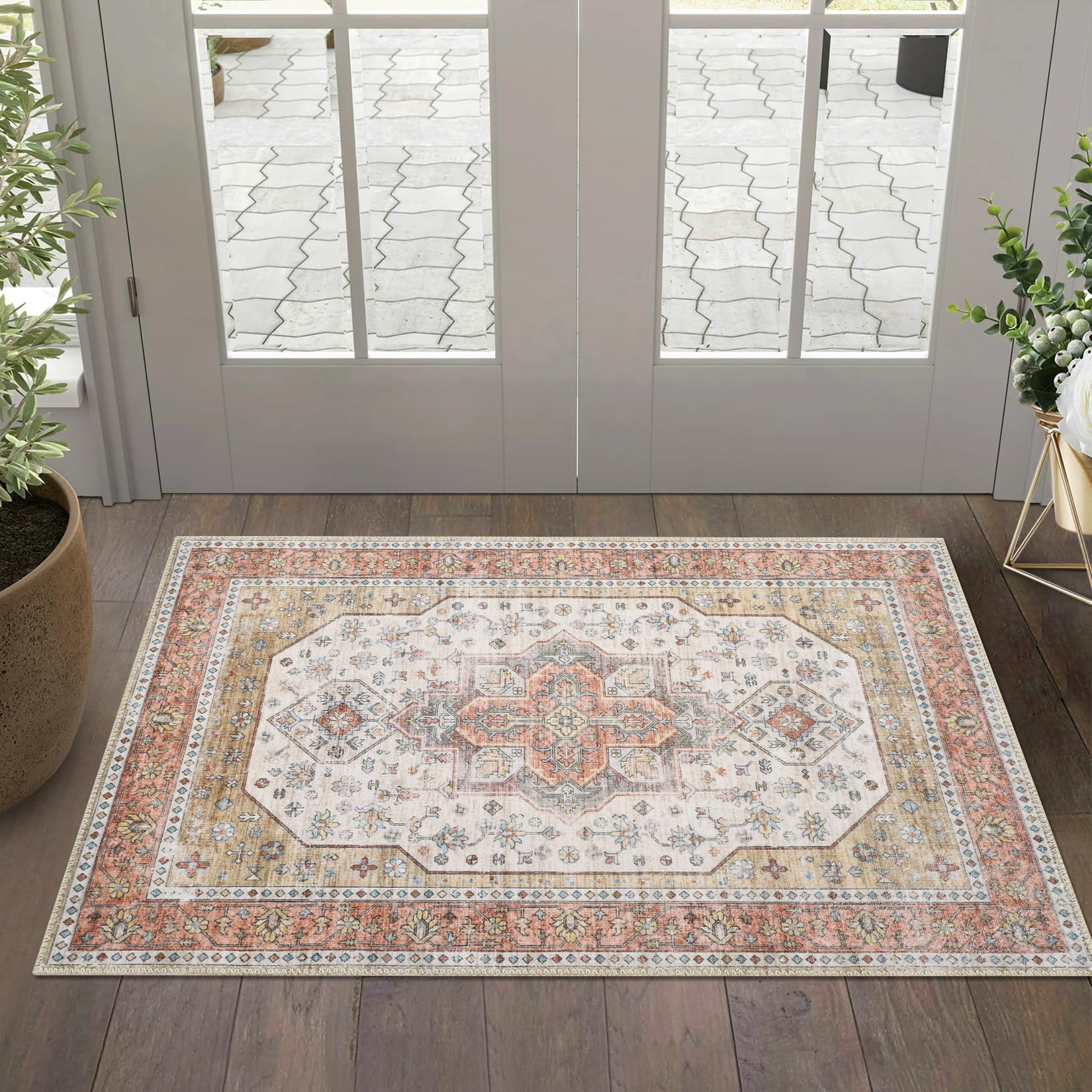 Garvee Washable Floral Print Area Rug, 2x3 Traditional Vintage Boho Indoor Carpet, Non-Shedding Low Pile Floor Mat with Non-Slip Rubber Backing for Bedroom Living Room Dining Room Office, Beige