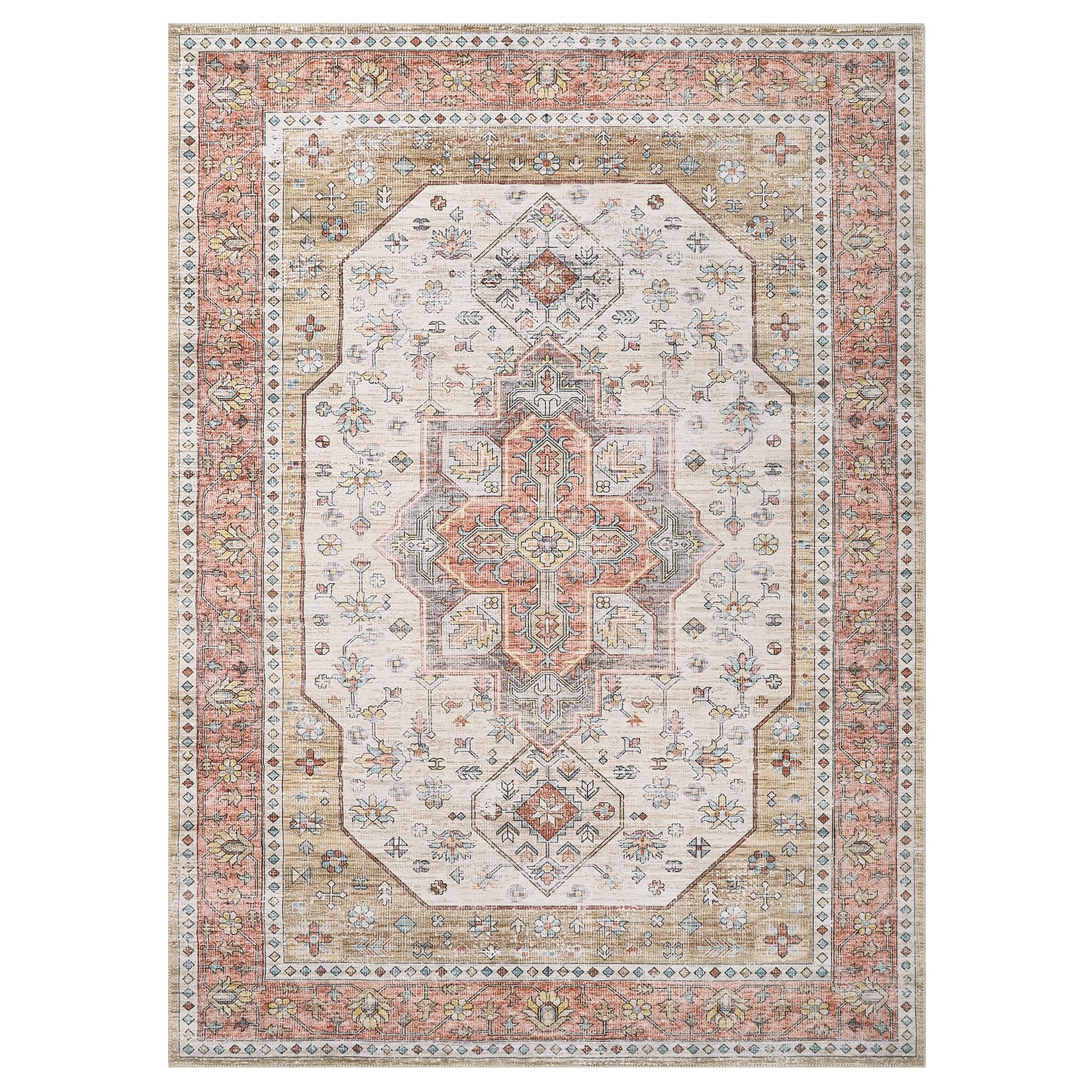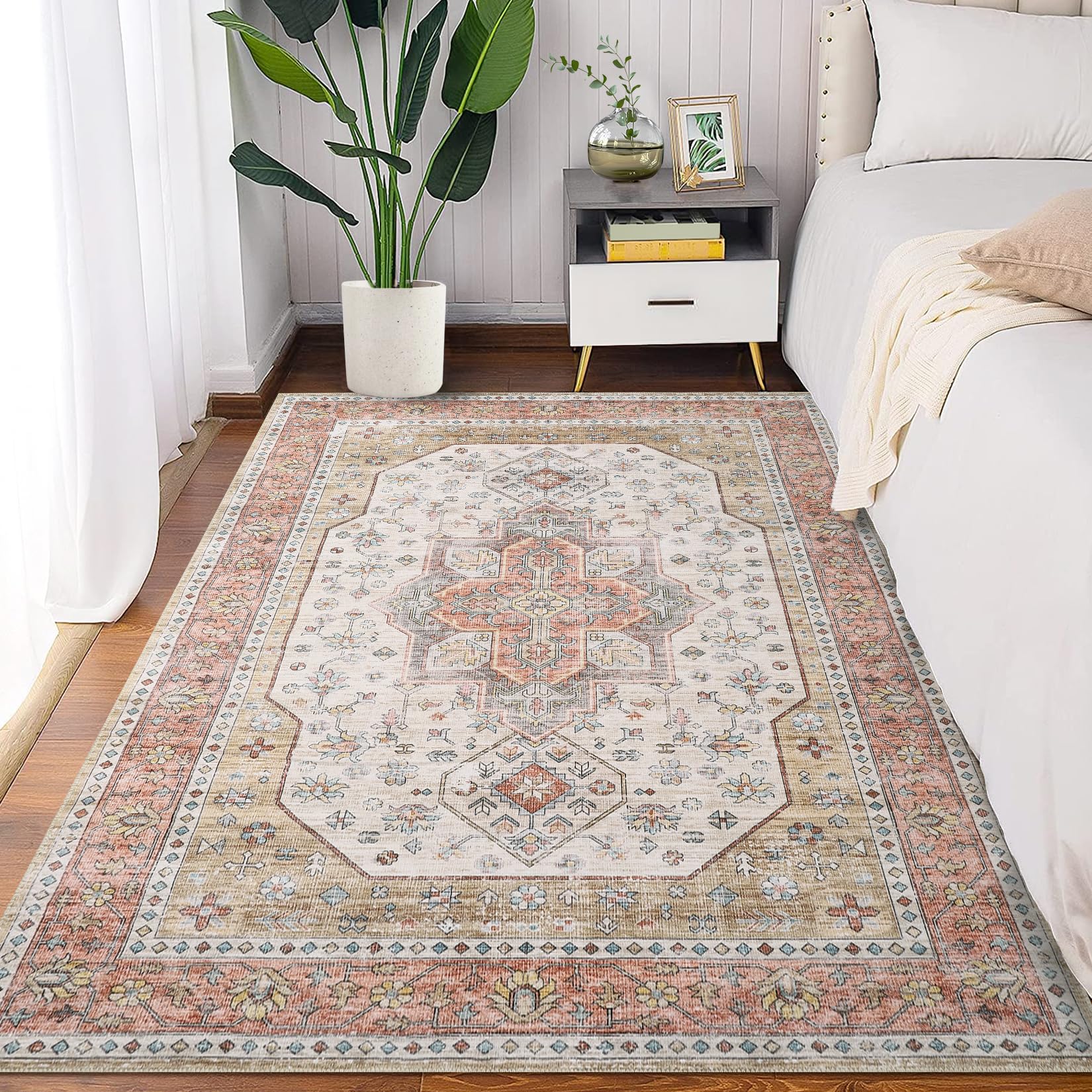 - TRADITIONAL VINTAGE BOHO DESIGN: The rug boasts a traditional vintage boho design, adding a touch of character and charm to the room. This design element enhances the aesthetic appeal of the space, creating a warm and inviting atmosphere in bedrooms, living rooms, dining rooms, offices, and other areas.