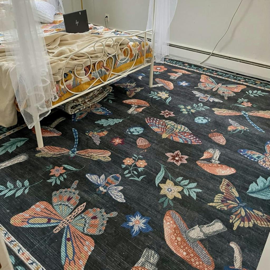 - Elegant Modern Aesthetic: Featuring eye-catching butterfly and floral patterns, this washable rug infuses your living space with timeless charm and cozy warmth, making it a beautiful addition to any room