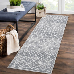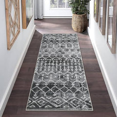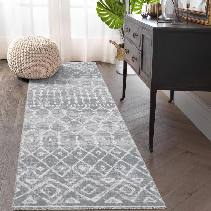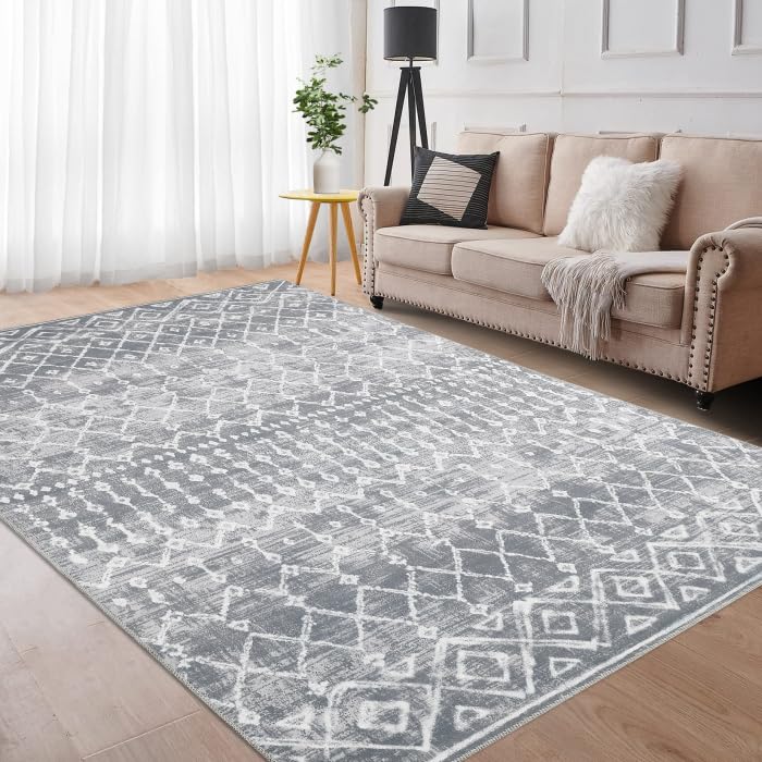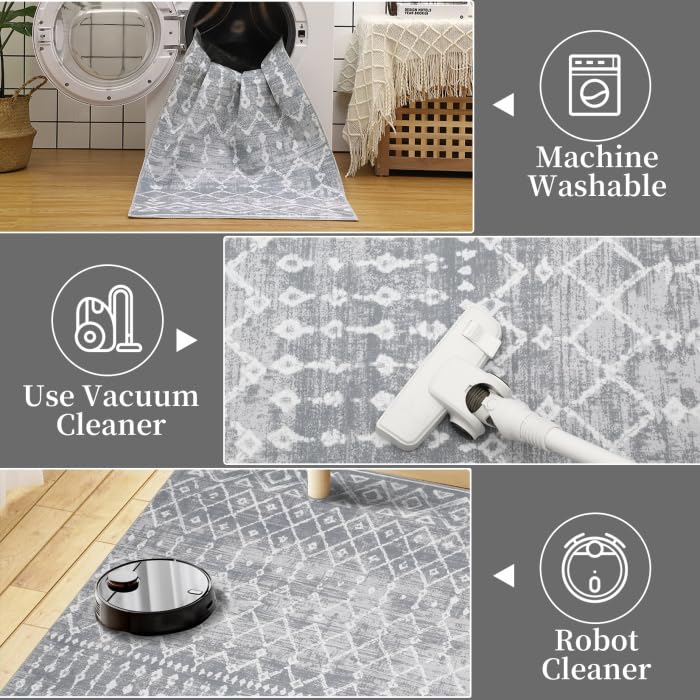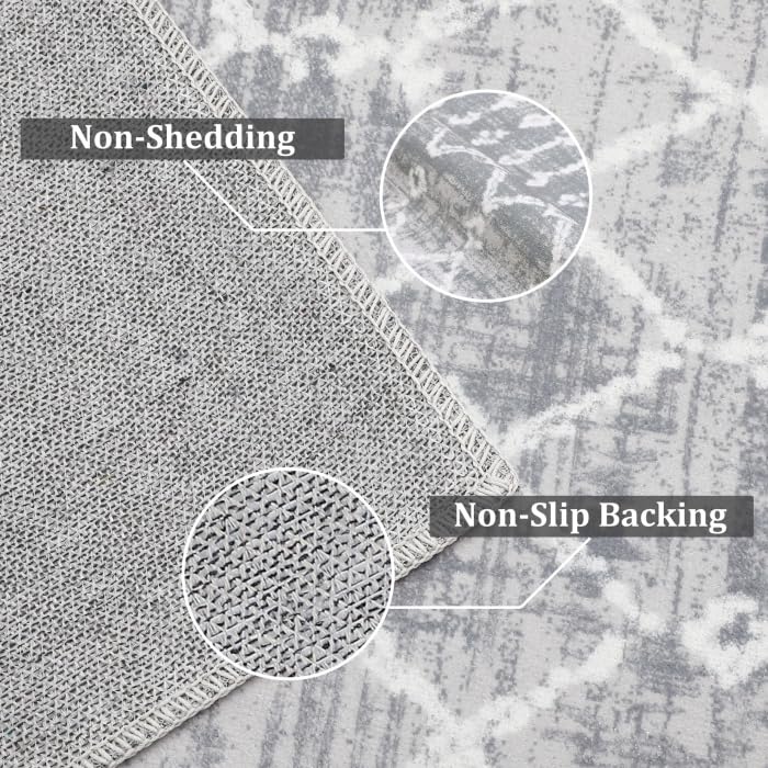 Garvee Washable Moroccan Area Rug 4x6 | Non-Slip, Stain Resistant | Premium Polyester | Vintage Grey Design | Living Room, Bedroom, Office