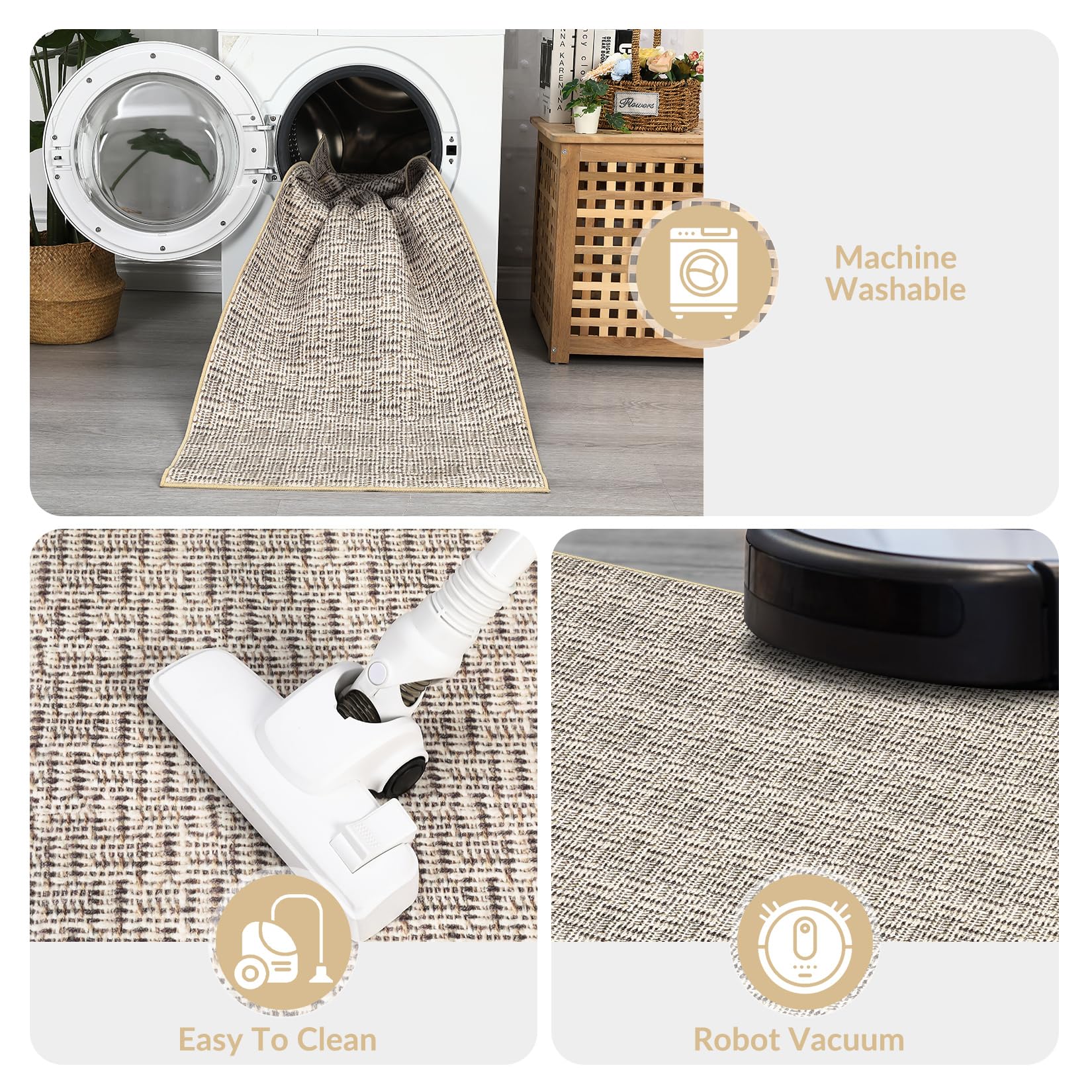 - Easy Maintenance: Cleaning is a breeze with our rug. Simply clean with a broom or shake out debris for regular care. For deeper cleaning, use a handheld vacuum or machine wash in cold water (avoid bleach). Multi-sizes choices makes our washable rug perfect for entry, hallway, small to medium living rooms, bedrooms, dining areas, playrooms, offices and so on, adding sophistication to any space.