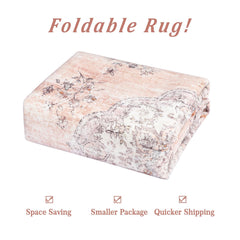 Garvee Washable Rug 5x7 Boho Area Rug Non Slip Distressed Rug Low Pile Accent Throw Rugs Stain Resistant Indoor Floor Carpet for Living Room, Pink
