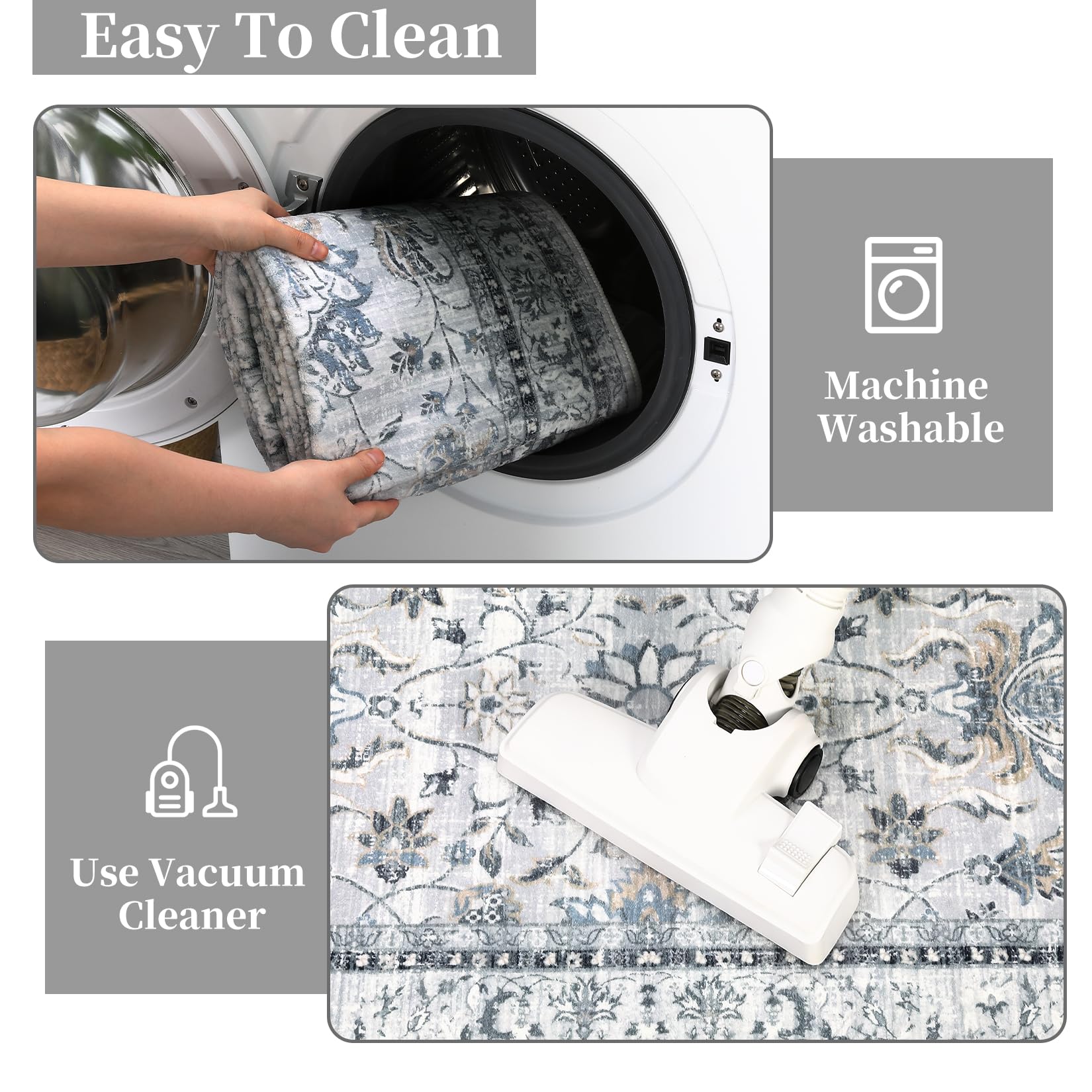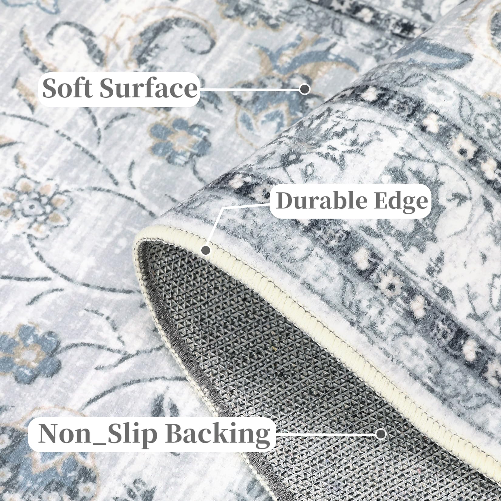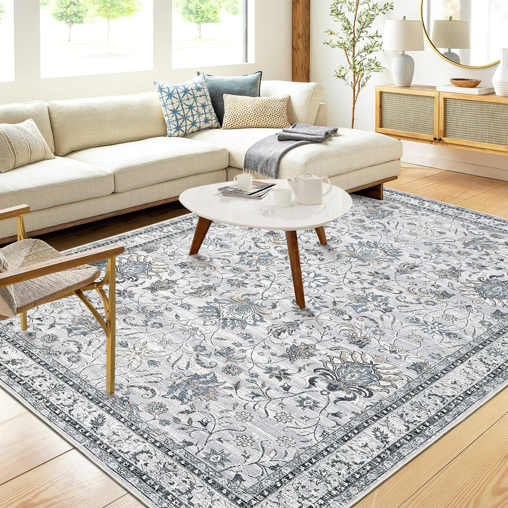 Garvee Persian Grey 8x10 Washable Rug Area Rug for Living Room Boho Floral Rug Non Slip Throw Rugs Soft Large Bedroom Rugs Low Pile Soft Stain Resistant Carpet for Dining Room Nursery
