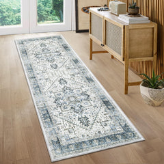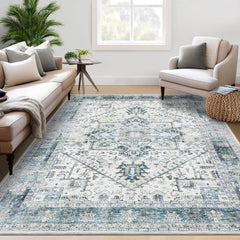 Garvee Washable Rugs Vintage Distressed Non Slip Soft Low Pile Area Rug 9'x12' Blue for Living Room Bedroom Office Dining Room Nursery
