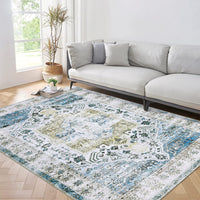 Garvee Washable Rug 9x12 Vintage Distressed Rug Non Slip Rug for Living Room Stain Resistant Throw Rug Low Pile Accent Rug Indoor Floor Cover for Bedroom Dining Room, Blue Multi