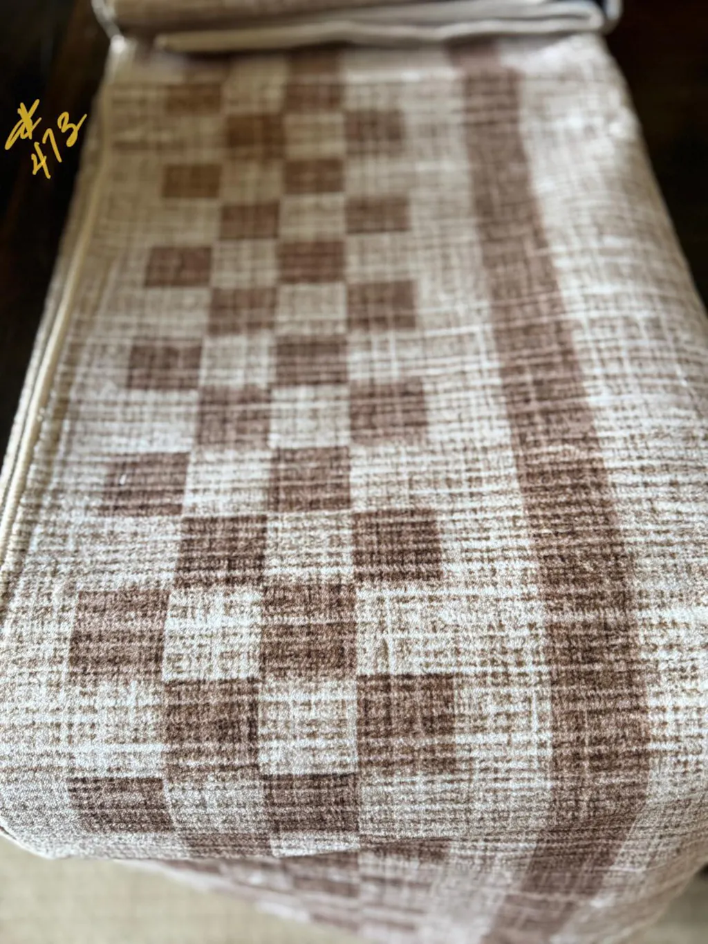Brown rugs fit in well with a wide variety of decor, especially with brown furniture. The checkered pattern draws the eye to the edges and creates a feeling of space in the center. This rug fits easily into our very ordinary washing machine and stays where it is put. Altogether this is a great buy.