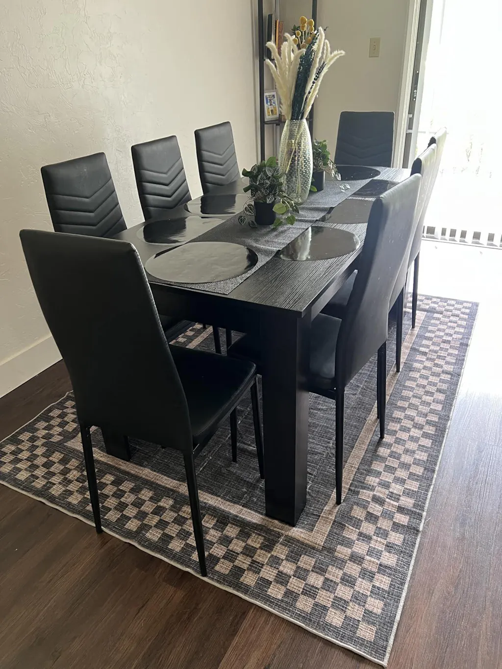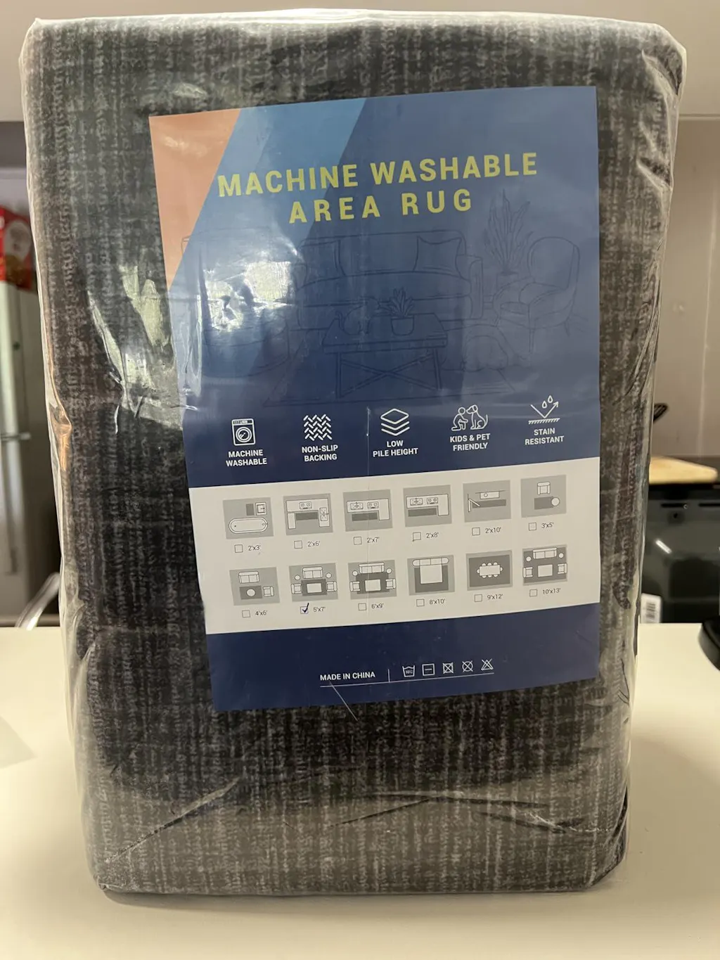 I recently purchased the GARVEE Machine Washable 5x7 Area Rug and I'm very happy with it. We needed a rug for under our dining room table that could stand up to daily use and potential spills, and this one fits the bill perfectly.The 5'x7' size is just right for our 6-person dining table, providing enough coverage for the chairs to still be on the rug when pulled out. The checkered geometric pattern is modern and stylish, and the black and gray tones match our decor beautifully.The description says it's "soft," and while it's not a plush, high-pile rug, it is soft to the touch and comfortable underfoot. The non-slip backing is a huge plus, as the rug stays securely in place even with chairs constantly moving over it.Best of all, it's machine washable! This was a key feature for us, especially with a rug in a high-traffic, high-spill area like the dining room. I haven't had to wash it yet, but it's great to know that a quick clean is easy to do.Overall, I highly recommend this rug. It's a great combination of style, practicality, and affordability.