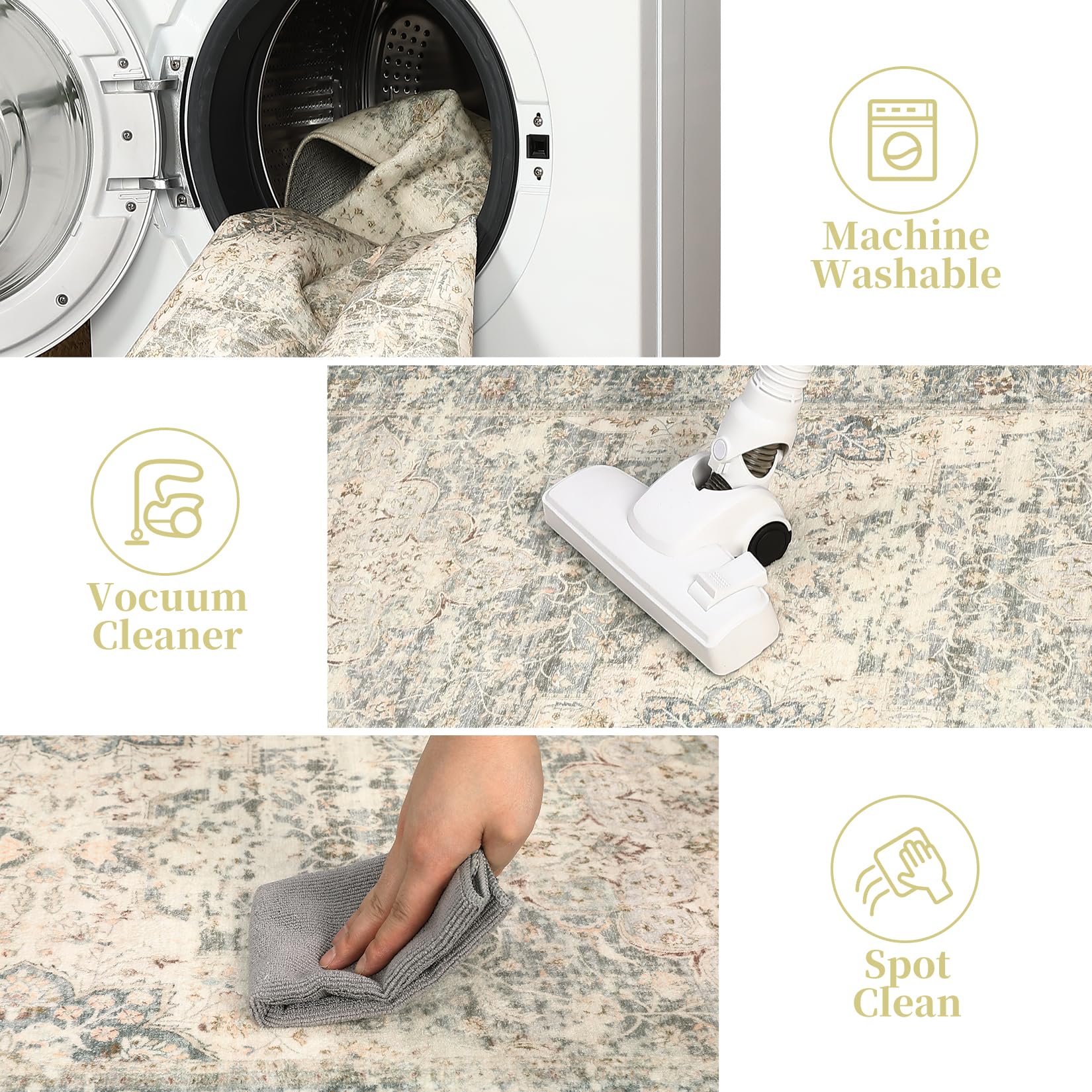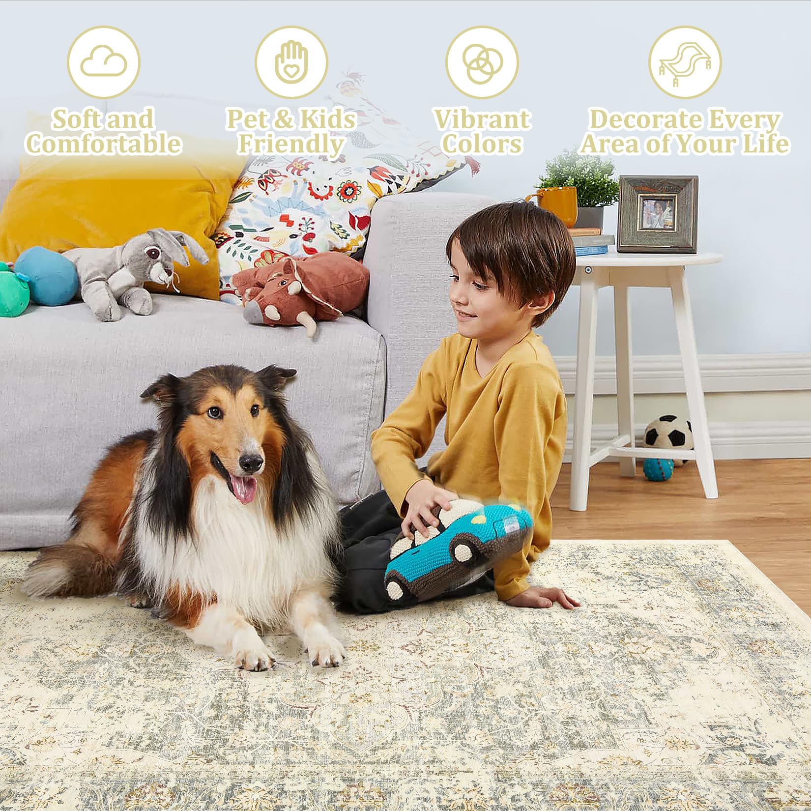 Garvee Washable Rugs 8x10 Rug for Living Room Non Slip Large Area Rug Non Shedding Soft Rug Vintage Rug Bedroom Rug Stain Resistant Carpet for Office Dining Room