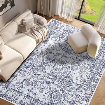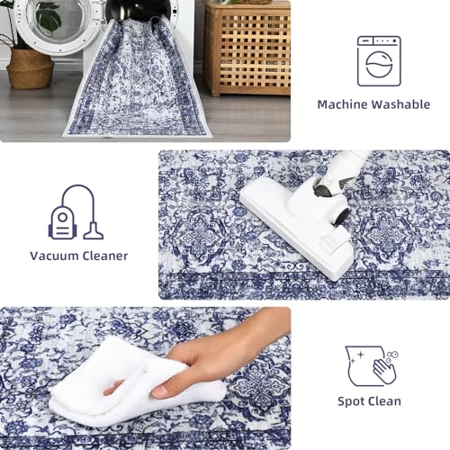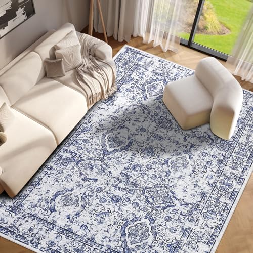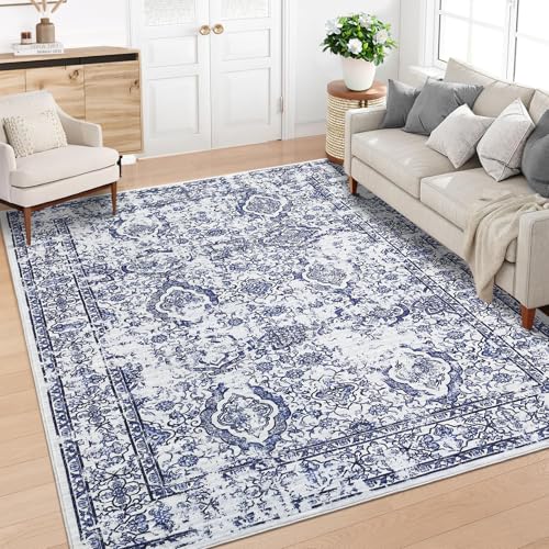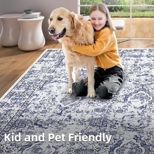 Garvee Washable Rugs 9 x 12 Rug for Living Room Vintage Rug Non Slip Large Area Rug Soft Non Shedding Throw Rugs Stain Resistant Carpet for Bedroom Office Dining Room Nursery Blue/Grey 9'x12'