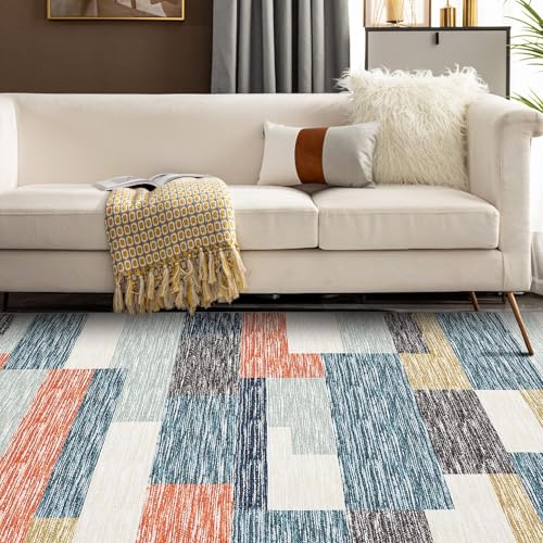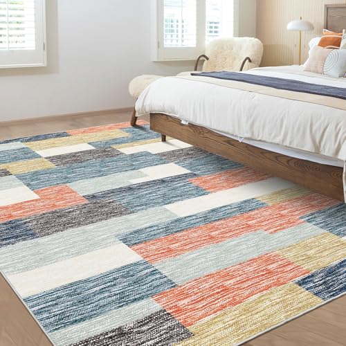 - Eye-Catching Modern Design: This machine-washable area rug features a stunning modern geometric patchwork design, adding a contemporary touch to any living room or bedroom and making it the perfect accent rug for your stylish interior
