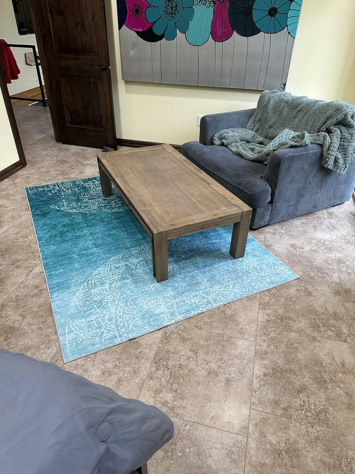 Fantastic colors and very nice soft material. I love this style of rug since they clean up easily, can be moved by yourself even if larger and hold up well with foot traffic and dogs. I have them all over in my guest rooms and they always receive great compliments from my guests. Great value for the materials and easy care features.