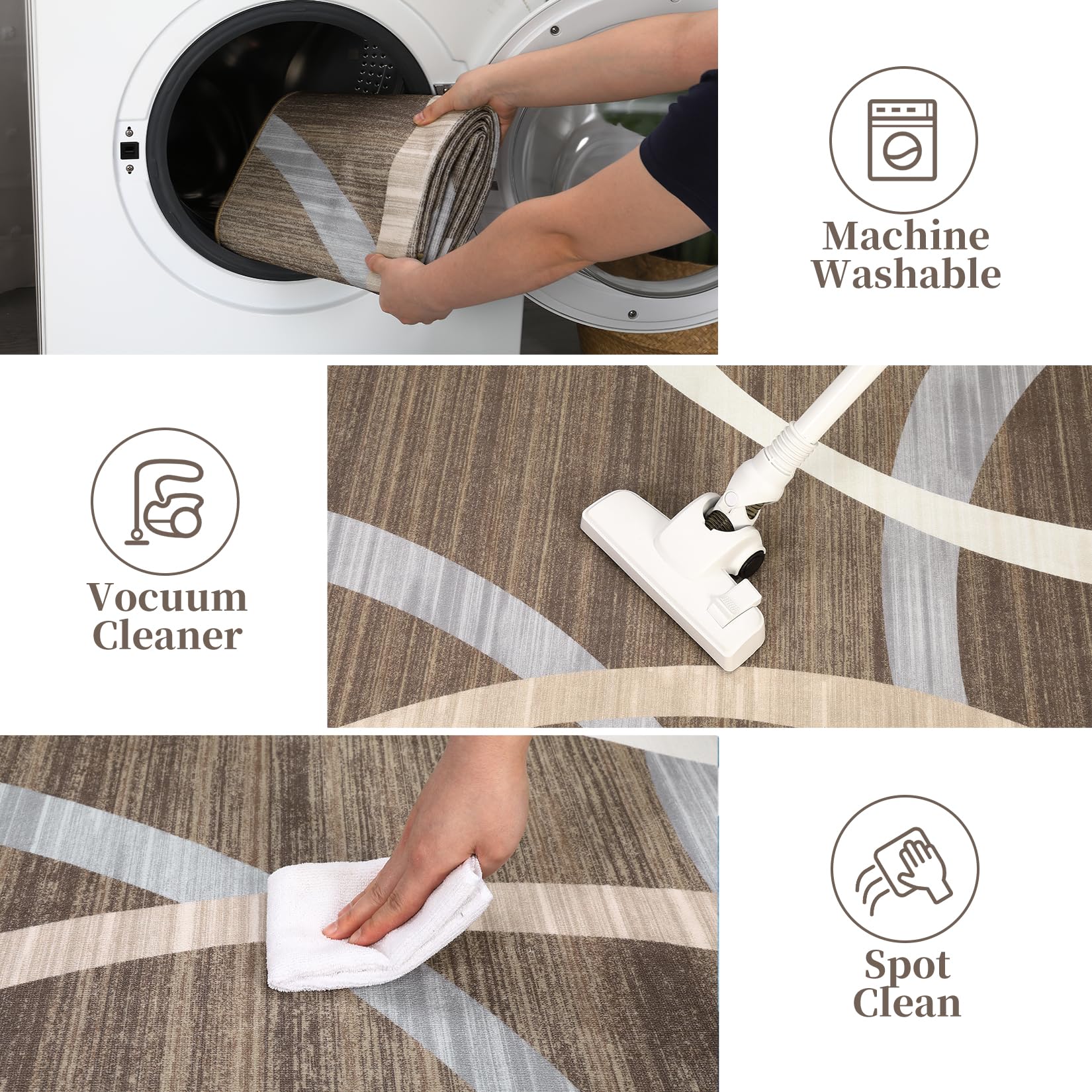 - 【Easy to Maintain】 This washable rug can be washed in the washing machine, will not fade or non-shedding, and can be reused. Daily maintenance is simple and convenient, you can directly use a vacuum cleaner to suck away debris and dust. Area rug may have temporary creases after you receive it. Please give it some time to flatten itself.