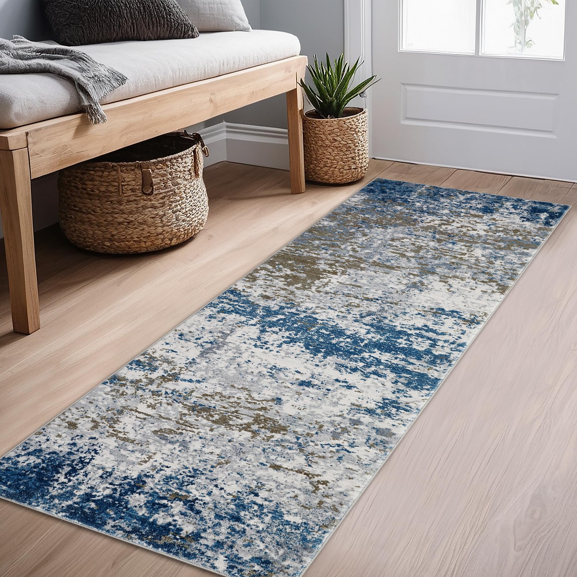 Garvee Washable Runner Rug 2x6 Modern Abstract Hallway Rug Soft Laundry Room Rug Non Slip Kitchen Rug Low Pile Accent Rug for Bedroom Bathroom Living Room, Navy