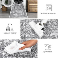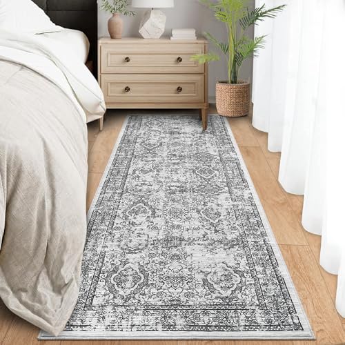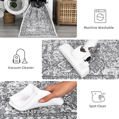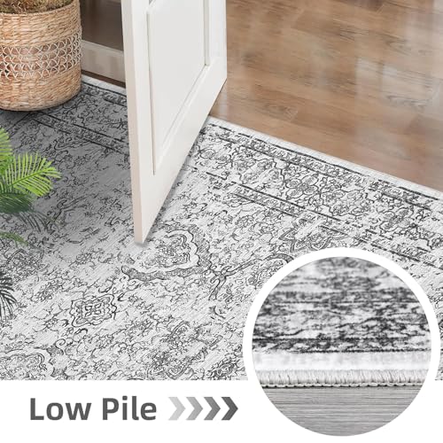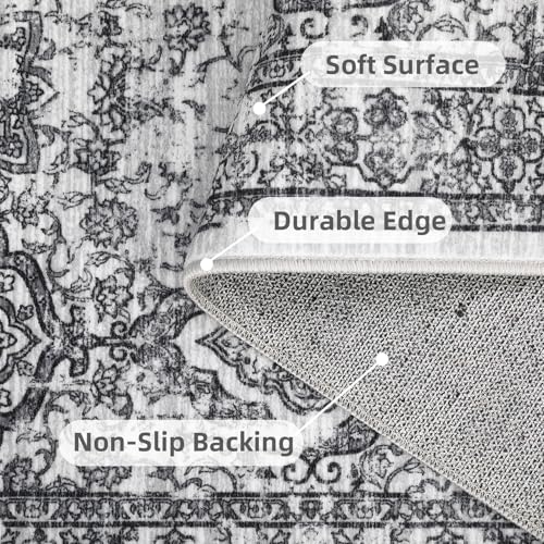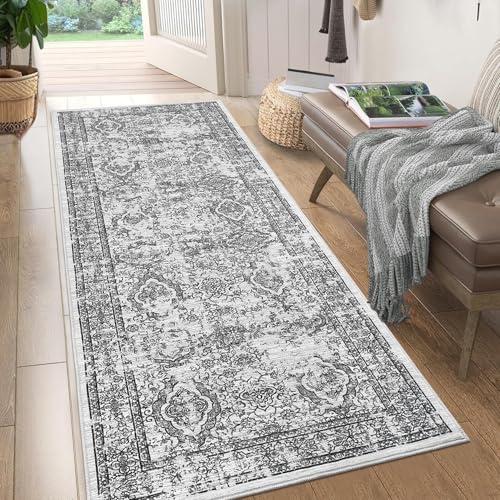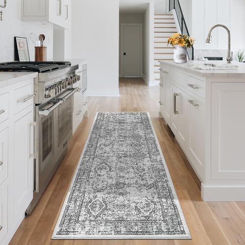 Garvee Washable Runner Rug 2x6 Runner Vintage Rug Non Slip Kitchen Rugs Oriental Indoor Entryway Rug Soft Bathroom Rugs Stain Resistant Carpet for Hallway Laundry Bedroom 2'x6' Distressed Grey