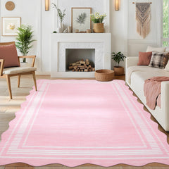 Garvee Washable Scalloped 5x7 Rug Living Room Rugs 5x7 Non-Slip Washable Solid Neutral Carpet, Modern Scalloped Rug Indoor Faux Wool Floor Mats for Bedroom Playroom Dining Room Office